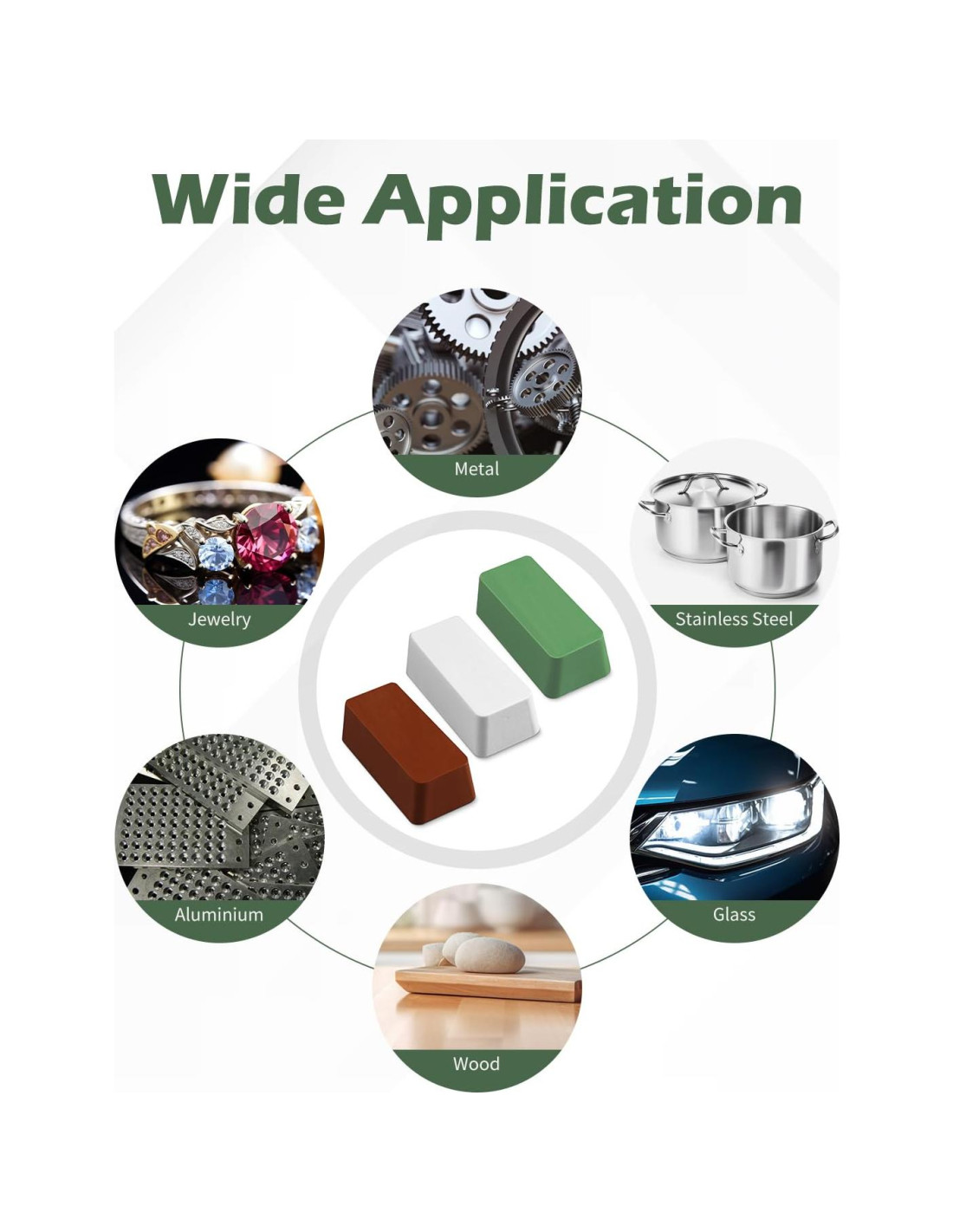- Aplicación Versátil - Adecuado para una amplia gama de materiales, incluyendo aluminio, acero inoxidable, latón, joyería y pulido de metal, asegurando un acabado suave y similar a un espejo en diversos proyectos.