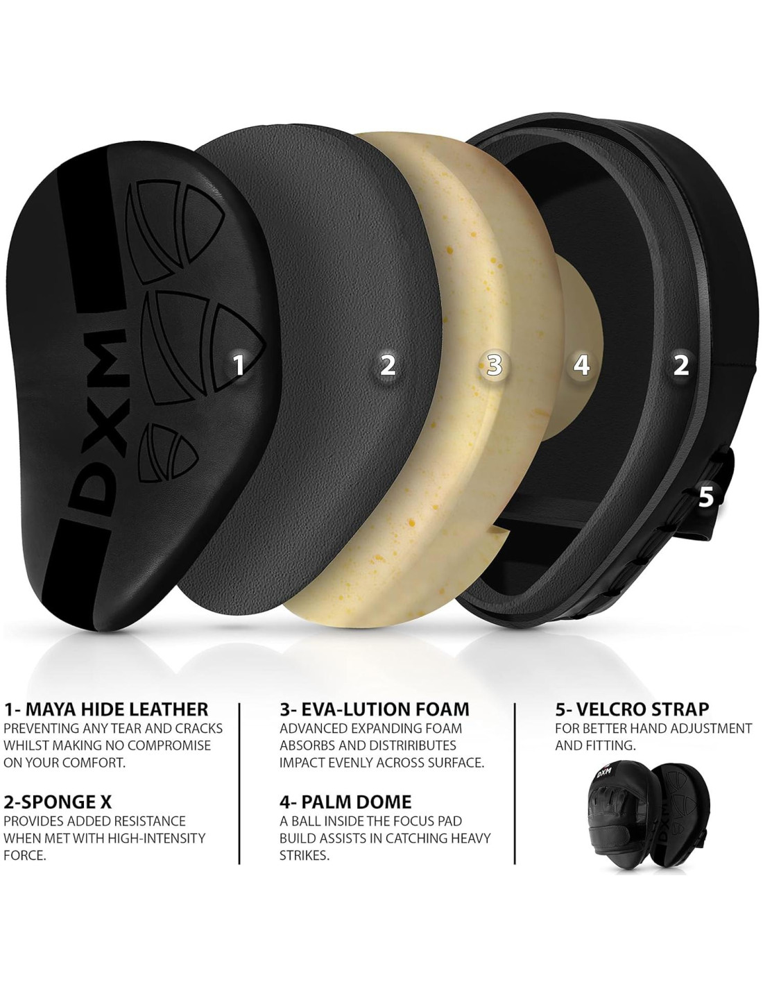 - Las almohadillas de enfoque DXM SPORTS han sido específicamente diseñadas para mejorar el enfoque y son excepcionalmente efectivas para perfeccionar golpes de precisión en el entrenamiento de luchadores. Ideal para una variedad de deportes de combate como Boxeo, Muay Thai, Kickboxing, MMA, Jiu Jitsu Brasileño, Karate y disciplinas similares, estos mitones de enfoque ofrecen una rutina de entrenamiento mejorada al simular objetivos en movimiento.