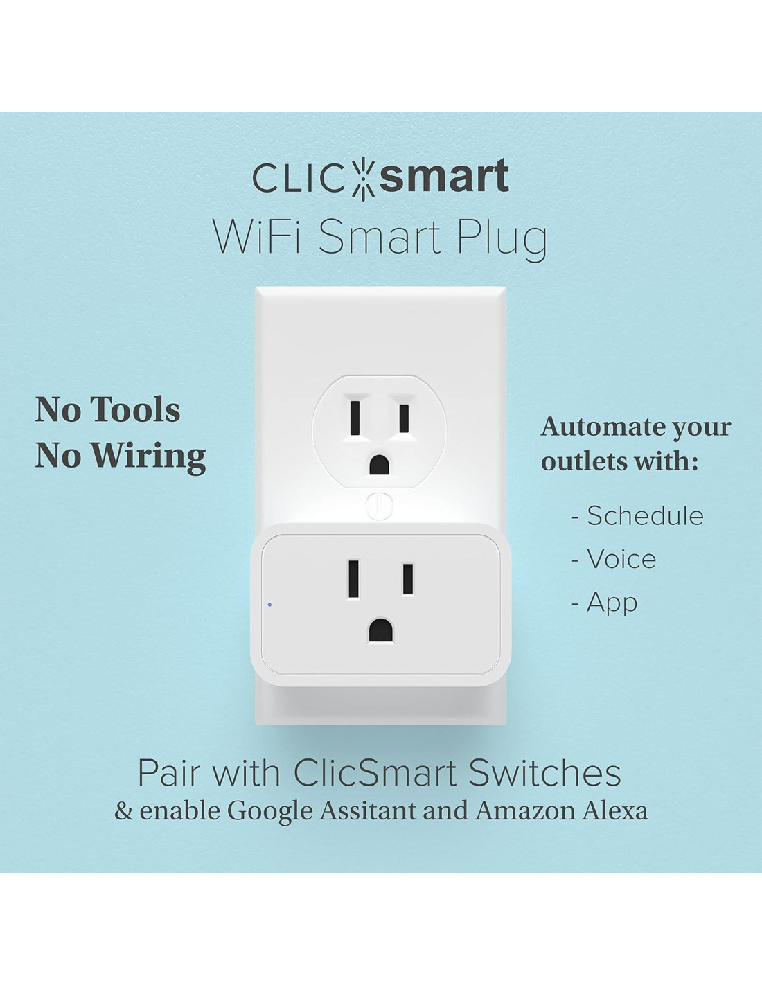 - COMBINA CON CONTROLADORES DE LUZ CLICSMART: Controla tus luces desde cualquier lugar conectando los Controladores ClicSmart con el Enchufe Inteligente WiFi para una experiencia de hogar inteligente completamente integrada. Controladores de interruptor de palanca o estilo rocker disponibles en Amazon; se venden por separado.