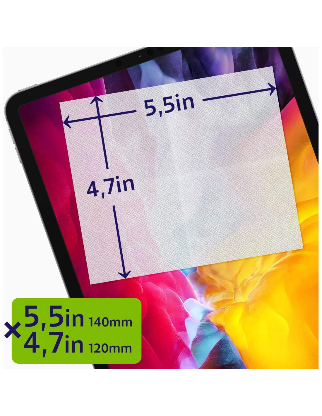 - Tamaño generoso - Con 440 toallitas limpiadoras de gafas prehumedecidas de 5.5 x 4.7 pulgadas (13,97 x 11,94 cm) cada una a tu disposición, estás bien equipado para mantener todos tus dispositivos y ópticas como cámaras impecables durante mucho tiempo.