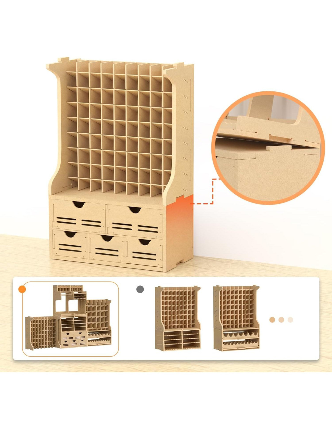 - Banco de Trabajo Ordenado para Acceso Rápido a las Pinturas--Se requiere una gran cantidad de pintura para modelos de plástico. El estante de pintura Bucasso GK12 puede almacenar 72 botellas de pintura con un diámetro de menos de 28mm, lo que lo convierte en una forma eficiente y que ahorra espacio para almacenar herramientas. Un lugar de trabajo limpio definitivamente mejorará la eficiencia del trabajo. Al hacerlo, podrás producir mejores obras.