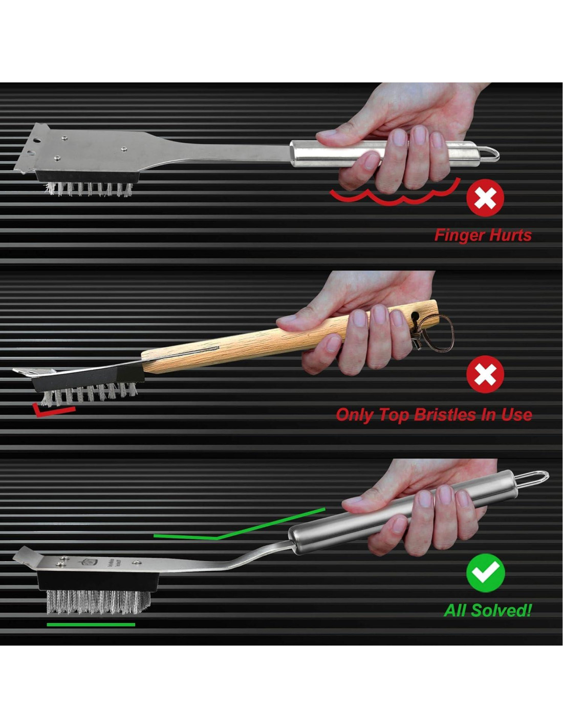 - Limpieza sin esfuerzo - Lleno de cerdas de acero inoxidable más rígidas y densas junto con un raspador de parrilla resistente, apenas tendrás que usar fuerza para mantener tu parrilla ordenada; Llévalo a casa y prepárate para eliminar incluso los restos más difíciles con solo unos pocos movimientos.