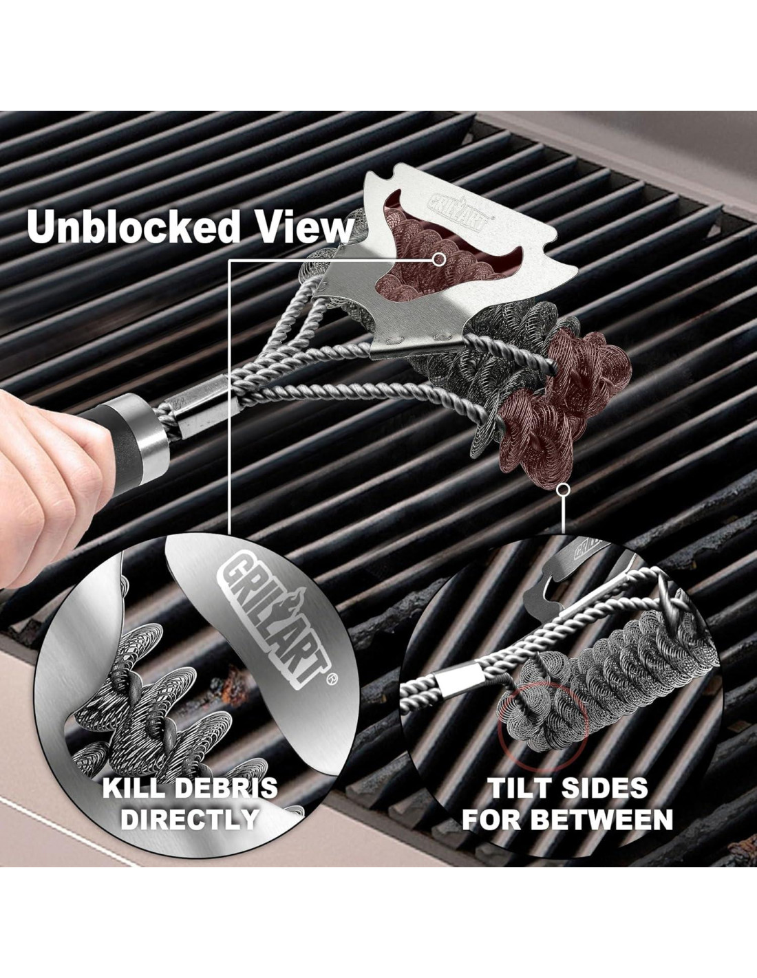- [Construido para Durar y Adecuado para Todas las Rejillas] : Todo el cepillo de limpieza está hecho de materiales superiores, es fuerte, portátil y no se oxidará, adecuado para todo tipo de parrillas y no causará rasguños, puedes usarlo con tranquilidad, durará. Considera conseguir dos: uno para ti y uno para tu mejor amigo. (Seguramente, tu satisfacción siempre es nuestra mayor búsqueda, no dudes en enviarnos un mensaje en cualquier momento si es necesario.)