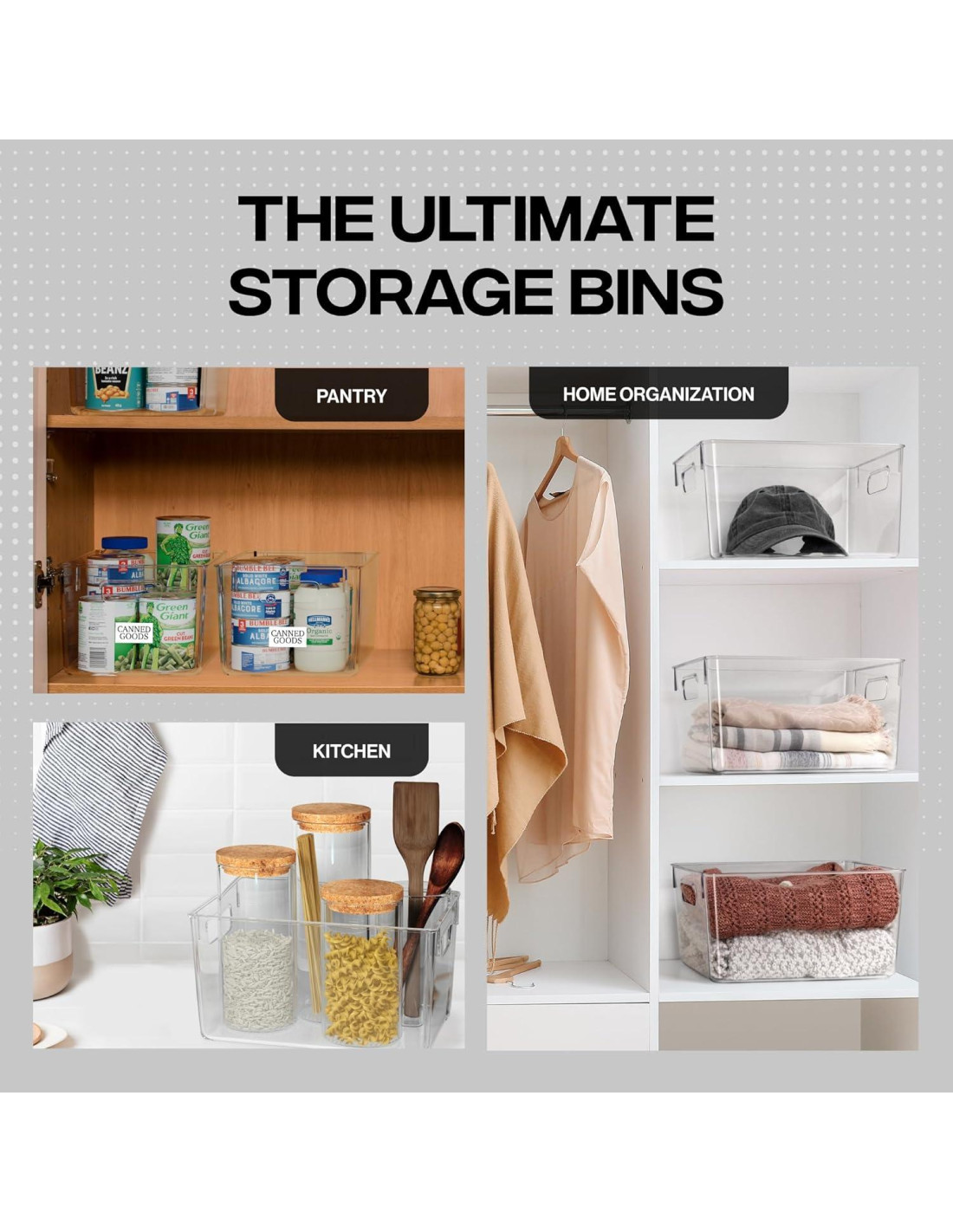 - ELECCIÓN DE ALMACENAMIENTO IDEAL - Estos contenedores de gran capacidad son excelentes para crear un refrigerador o despensa limpios y organizados. Perfecto organizador de almacenamiento de plástico profundo para estanterías de muebles en oficina, entrada, armario, gabinete, dormitorio, lavadero, guardería y sala de juguetes. Ideal para almacenamiento en cocina, almacenamiento en despensa, almacenamiento en refrigerador y tu gabinete de despensa o gabinete de almacenamiento. Puedes usar estos organizadores de almacenamiento en cualquier lugar de tu hogar.