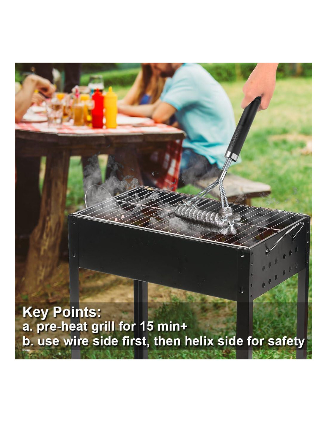 - [ALAMBRE & Hélice] Cepillo combinado 2 en 1 - Seguro + Eficiente A cepillo integrado de alambre y hélice - El lado del cepillo de alambre puede limpiar eficientemente las manchas obstinadas dejadas en la parrilla, luego el lado de hélice puede limpiarlo doblemente para asegurar que no quede ningún alambre suelto en su parrilla. Con este cepillo para parrilla, puede tener la eficiencia de limpieza rápida del cepillo de alambre y mantenerse alejado de la ingestión de alambre al mismo tiempo. ¿Alguna vez quisiste mantener tu comida 100% segura, pero odias renunciar a una limpieza más rápida? Te encantará.