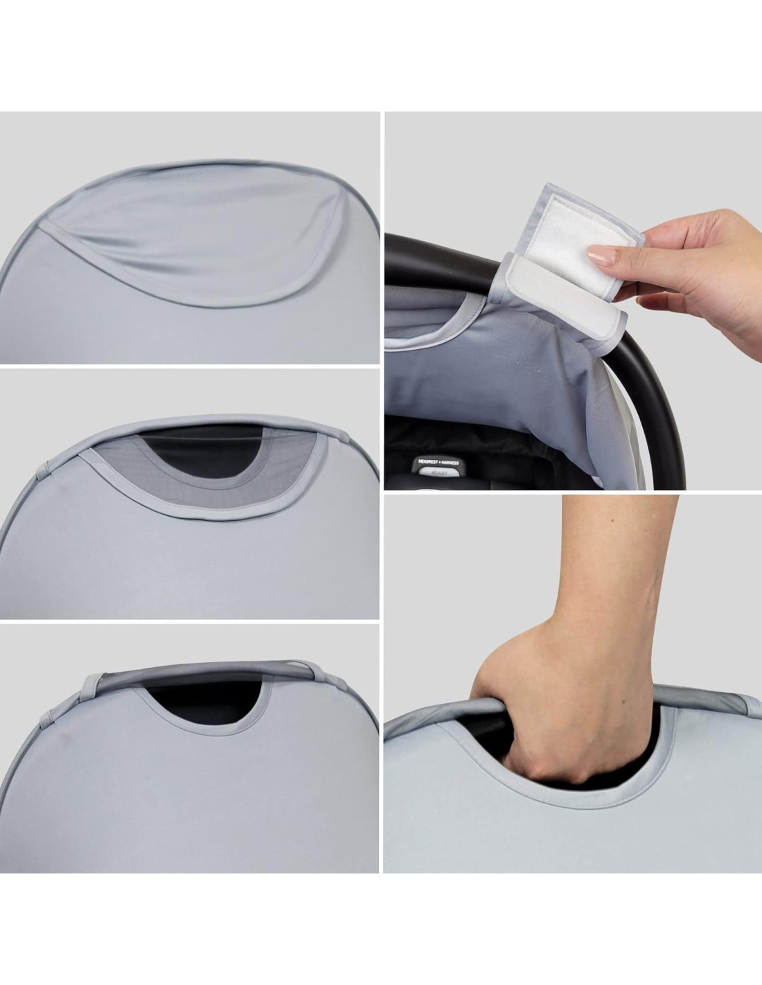- [FÁCIL ACCESO AL BEBÉ] No es necesario quitar la cubierta para sacar a tu bebé del asiento de coche. Esta cubierta sin complicaciones viene con correas de velcro que la mantienen unida al asiento de coche. Simplemente retírala hacia atrás para acceder al bebé. La abertura del asa de transporte permite un agarre firme para llevar el asiento de coche mientras la cubierta está puesta.