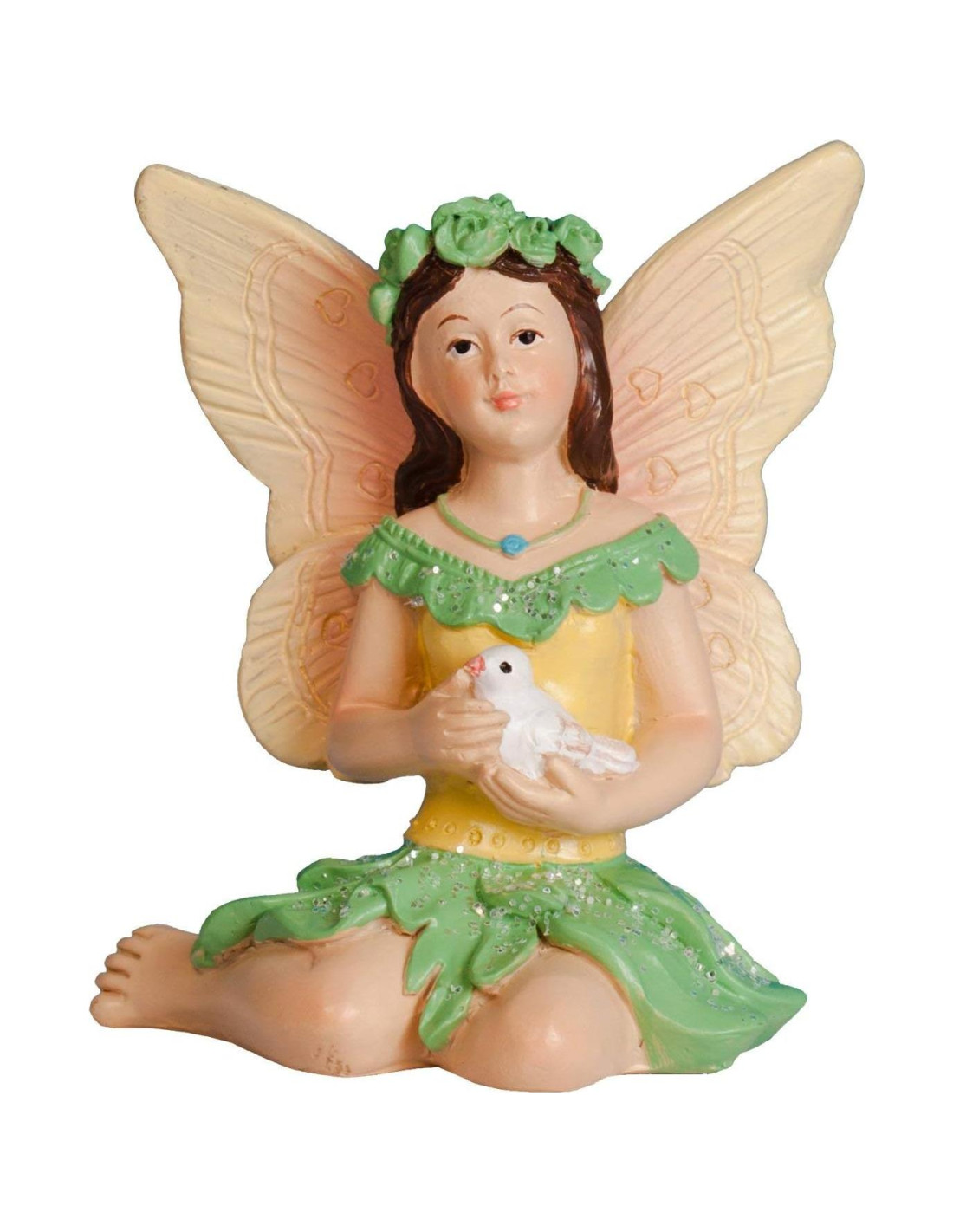 - (1) Búho (1.5"h x .75" dia. - 3.81 cm x 1.91 cm), (1) Puerta Encantada (4"h x 2.875"w x 1"d - 10.16 cm x 7.30 cm x 2.54 cm), (1) Hada con Paloma (3.25"h x 1.75"w - 8.26 cm x 4.45 cm)
