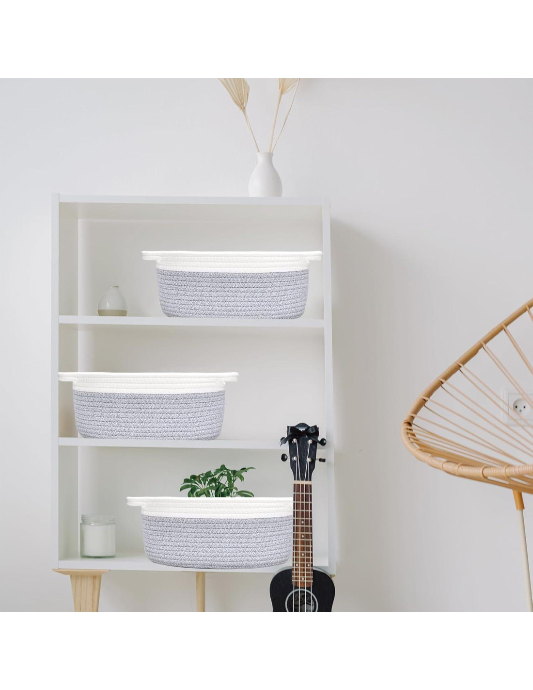 - DISEÑO VERSÁTIL: La cesta de cuerda blanca cuenta con asas resistentes para facilitar el transporte de juguetes, suministros o artículos decorativos