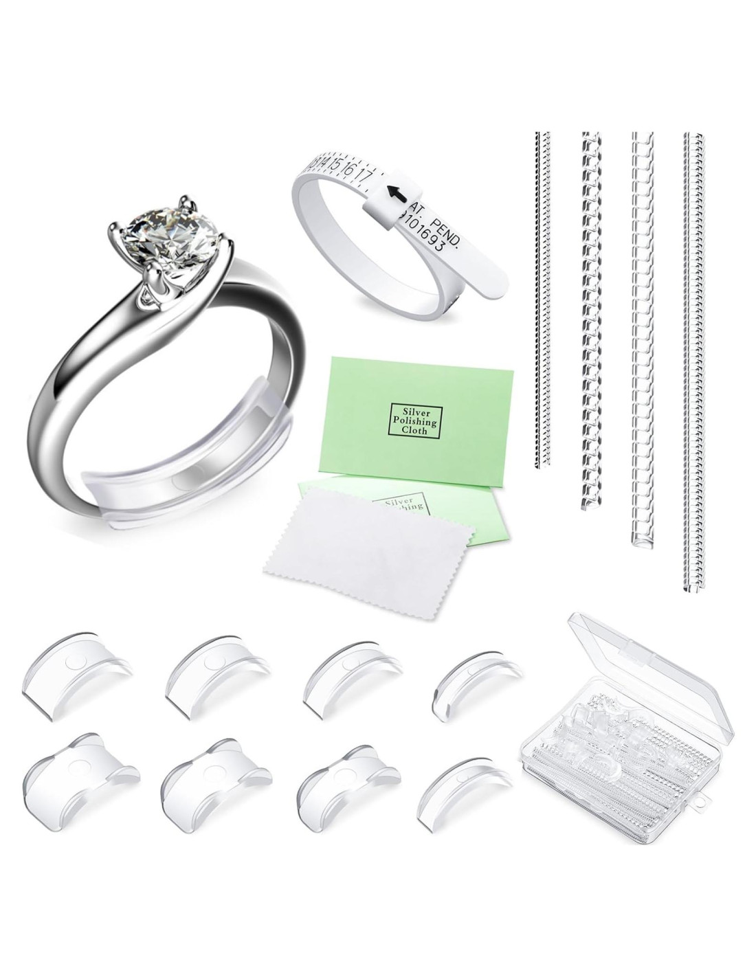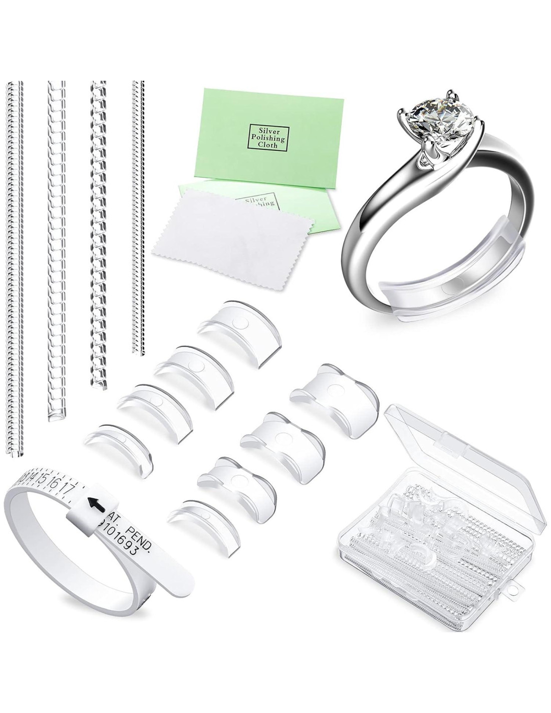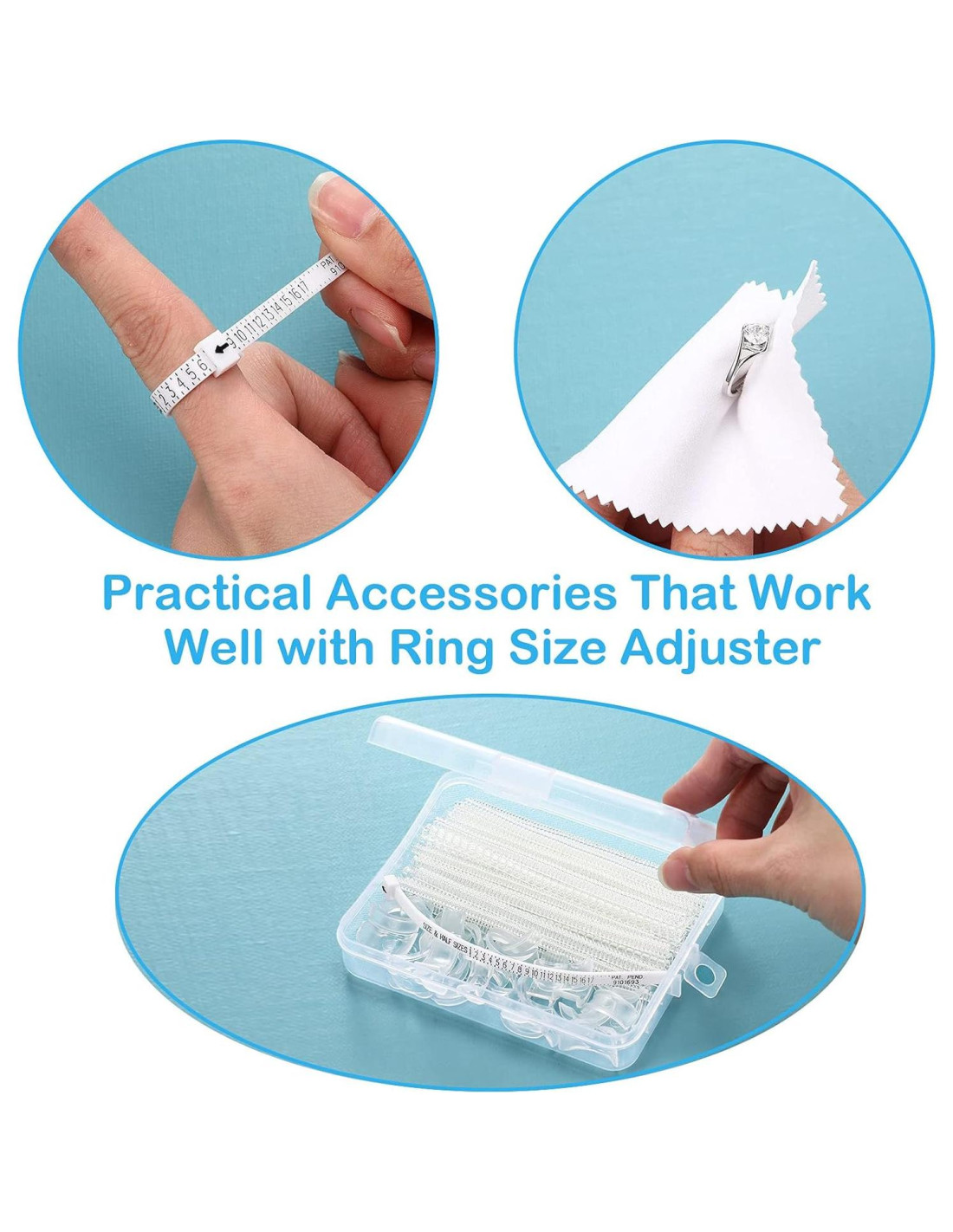 - Ocasiones adecuadas: estos ajustadores de tamaño de anillo con cinta métrica útil, paño para joyas y conjunto de caja organizadora se pueden aplicar para muchas ocasiones, pueden proteger tu anillo de rayones mientras haces tareas del hogar, ideal para bodas, trabajo y uso diario; Nota: Mantener fuera del alcance de niños menores de tres años, ya que pueden ser tragados.