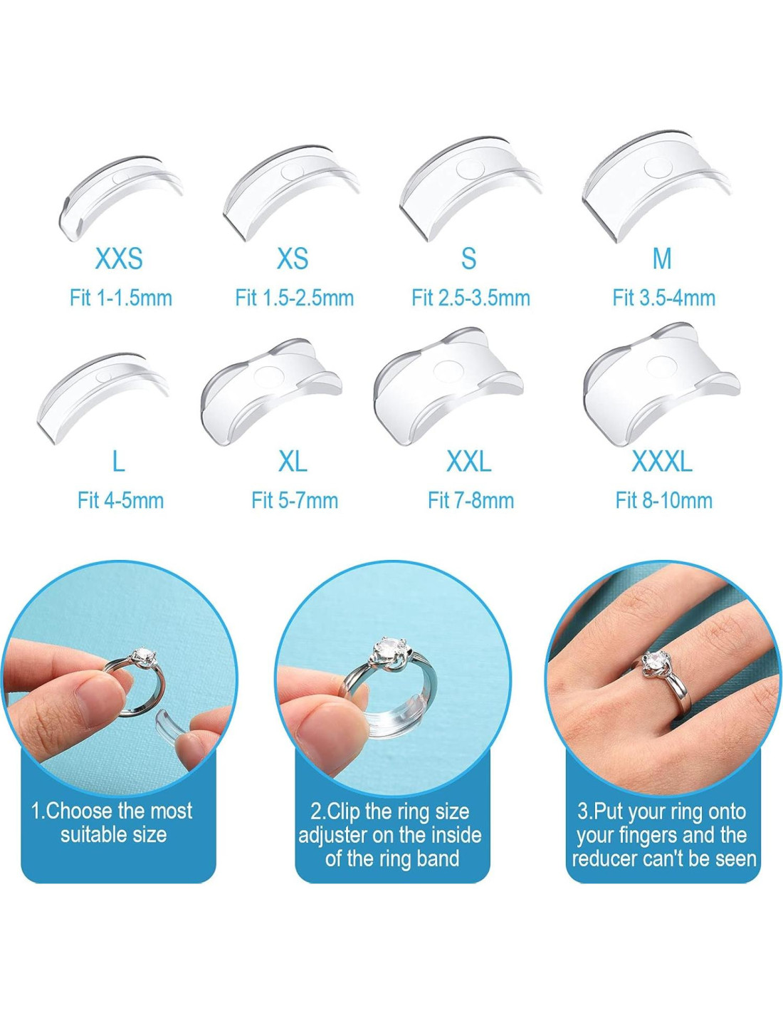 - Diseño invisible: nuestros ajustadores de tamaño de anillo están diseñados con material transparente, son completamente transparentes y no dejan dudas sobre la visibilidad, evitarán que el anillo se deslice de tu dedo, y el ajustador de anillo está en el interior del anillo suelto que hace que parezca desaparecer para que no afecte la estética