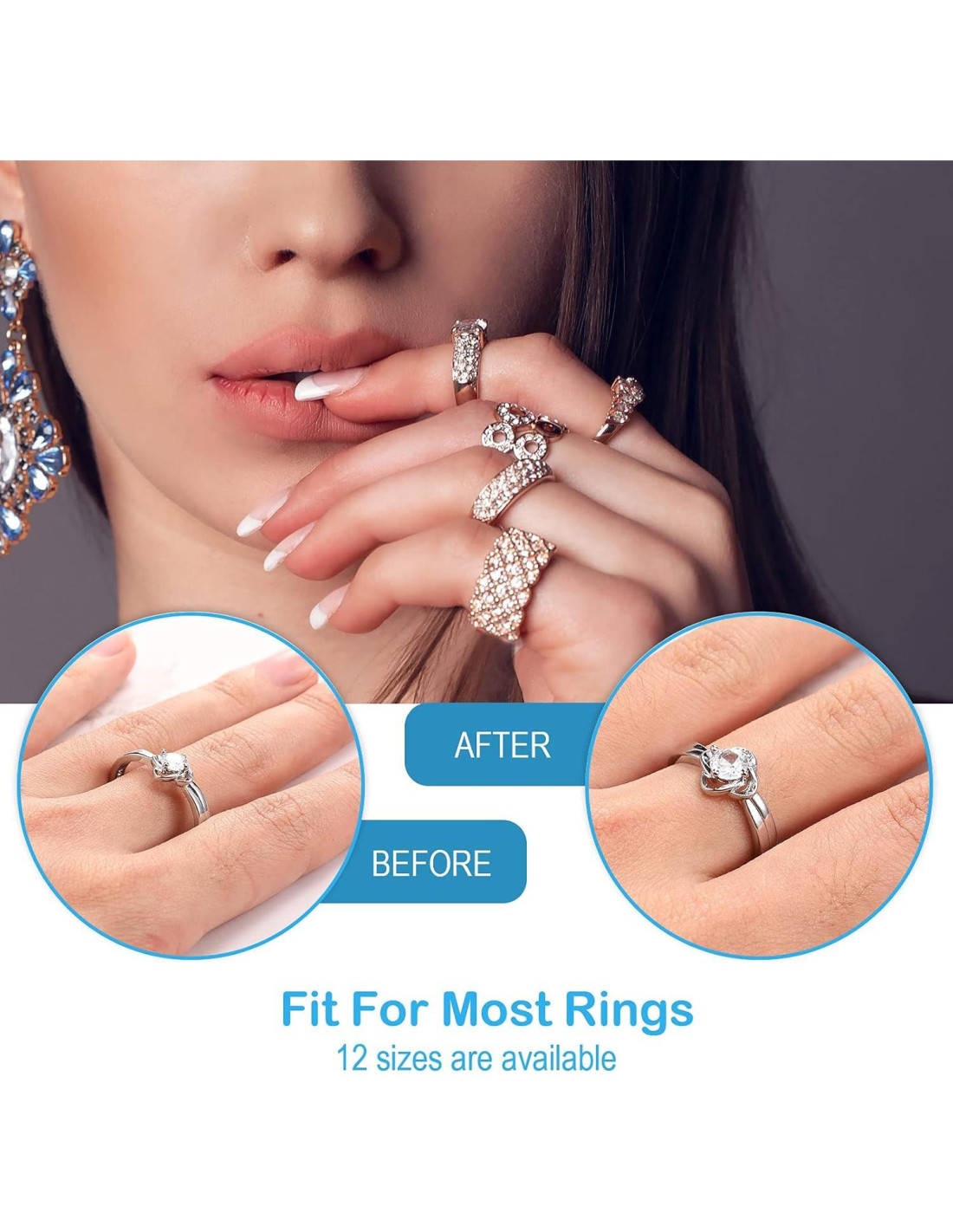 - Ajuste para la mayoría de los anillos: 2 estilos y 12 tamaños están disponibles, para ayudarte a resolver el problema de discrepancias en el tamaño del anillo, estos reductores de tamaño de anillo son adecuados para anchos de anillo de 1 mm a 10.5 mm para anillos de hombres y mujeres, previniendo que el anillo se deslice de tu dedo, brindándote una experiencia de uso cómoda