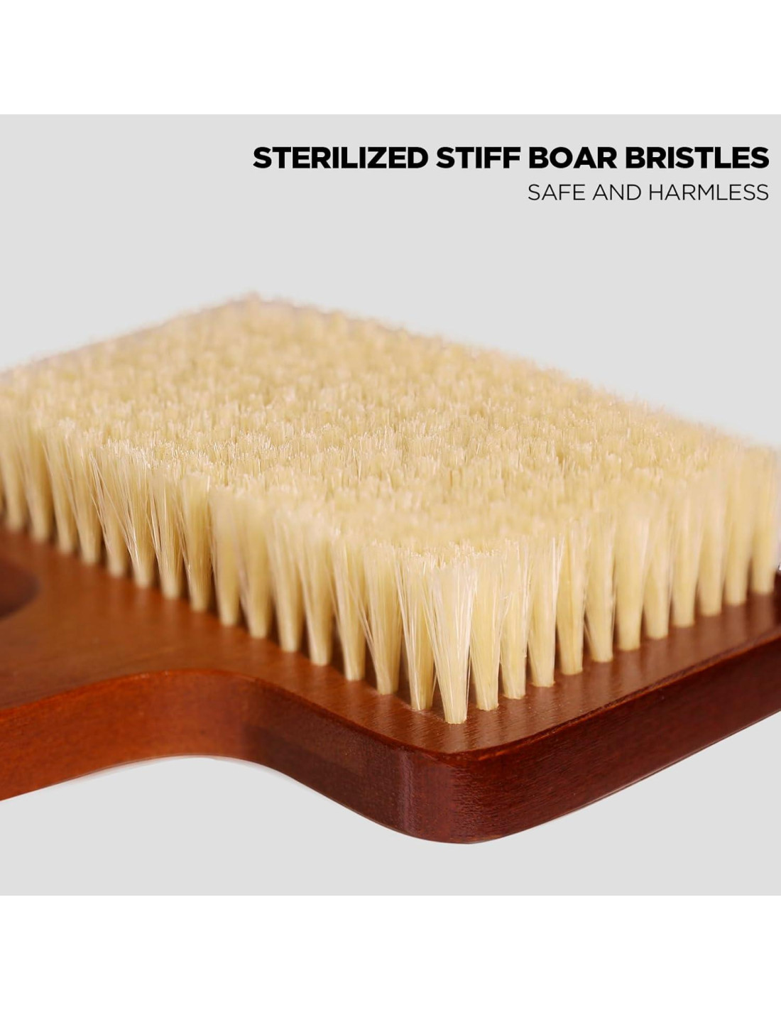 - GRAN ÁREA Cerdas Naturales de Jabalí para Exfoliación Efectiva: Las cerdas del cepillo de baño con mango largo curvado fueron esterilizadas, las cerdas de gran área aumentan la fricción con la piel y eliminan la suciedad profunda y la piel muerta de manera efectiva.