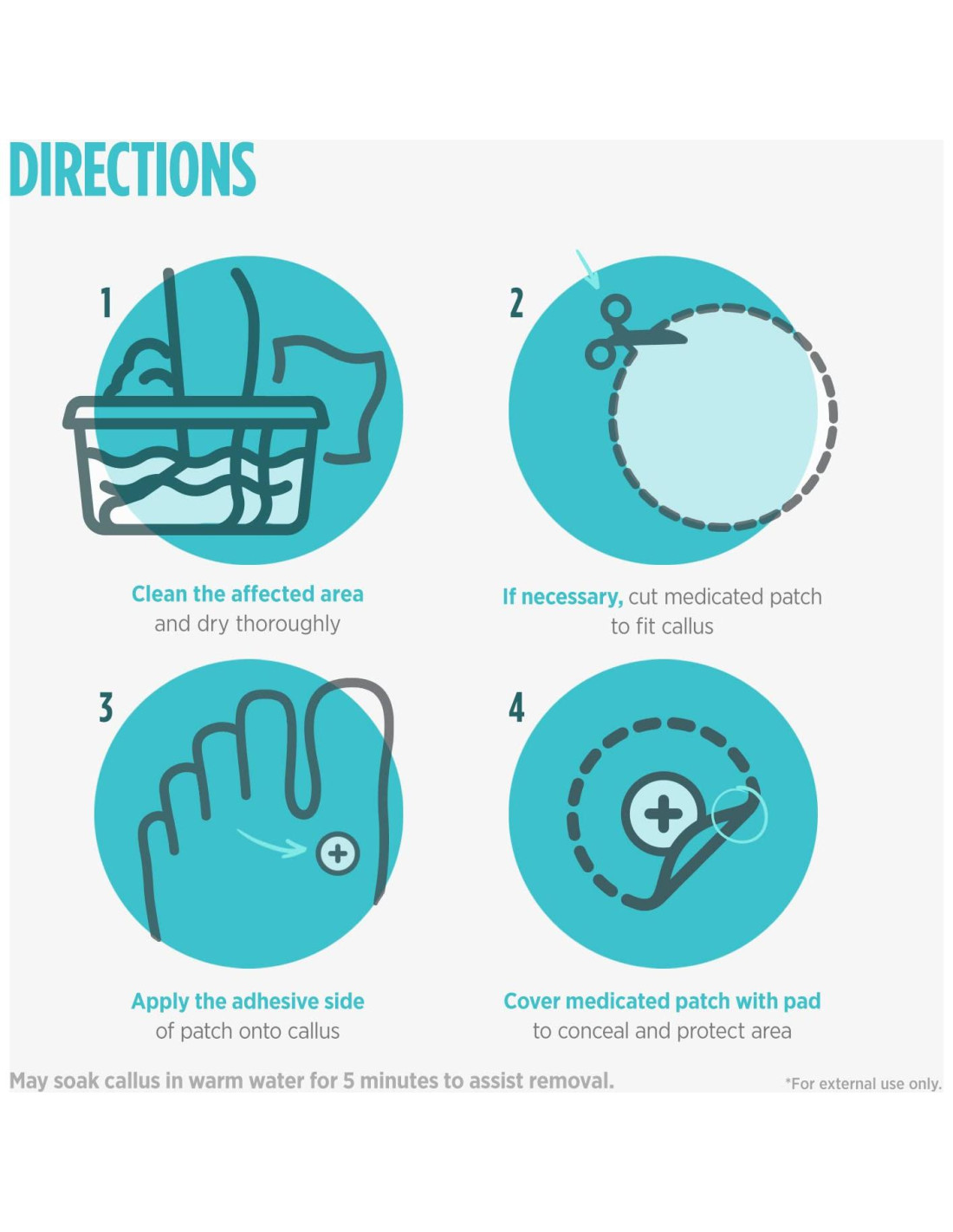 - Tratamiento Conveniente para la Eliminación de Callos: Cada parche removedor de callos medicado oculta y protege para mayor comodidad; Mantén los callos fuera de la vista y fuera de la mente mientras ocurre la curación