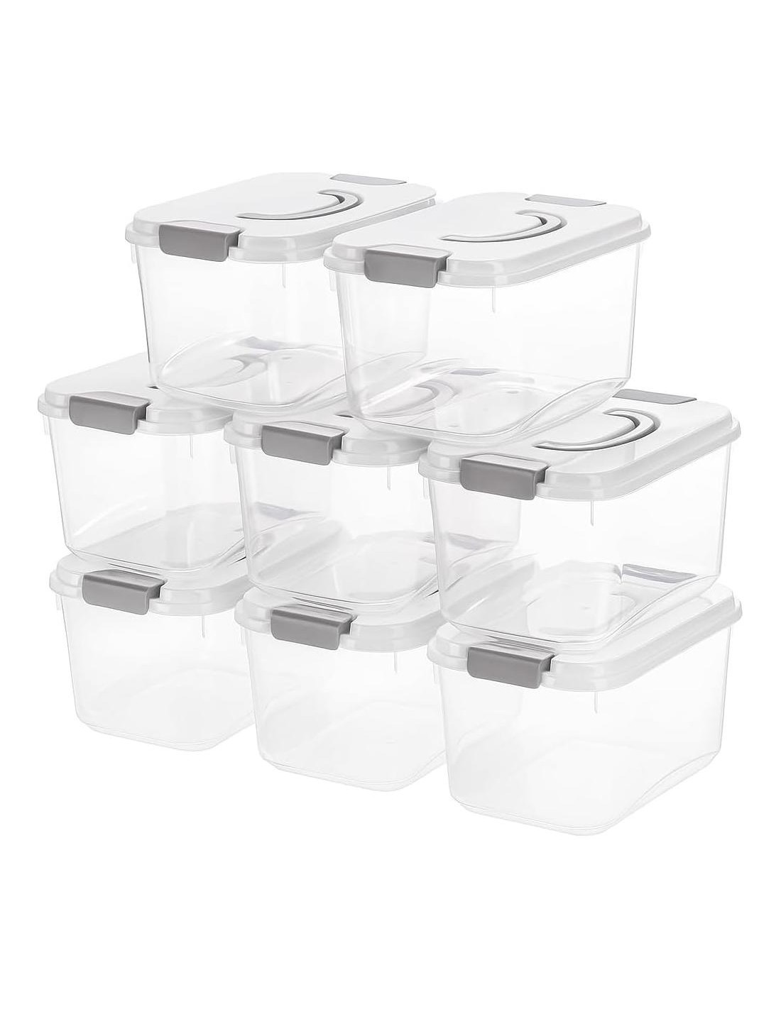 - Las cajas de almacenamiento con cierre están hechas de plástico grueso de alta calidad que es inodoro y libre de BPA, lo suficientemente duradero como para almacenar productos durante años.