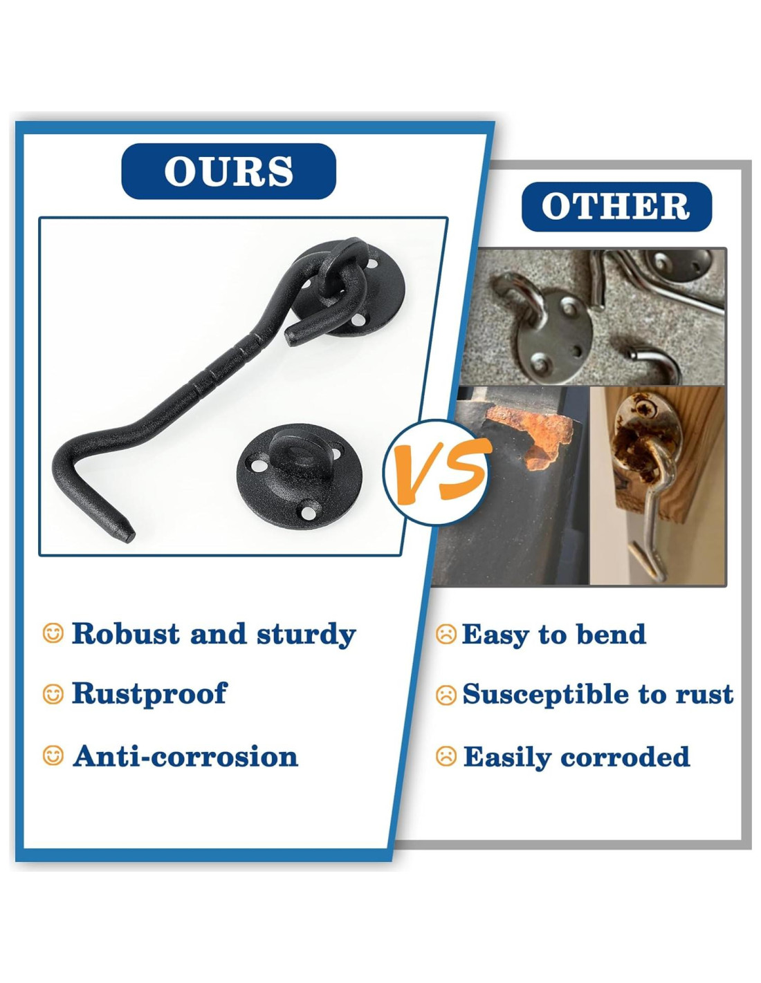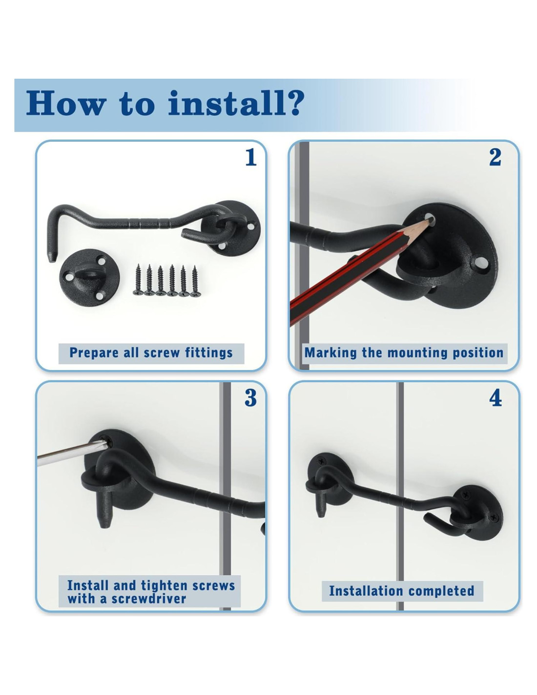 - FÁCIL DE INSTALAR: Todos los accesorios de tornillos están incluidos en el paquete, por lo que puedes instalar fácilmente el gancho y ojo en una variedad de superficies para proporcionarte seguridad.