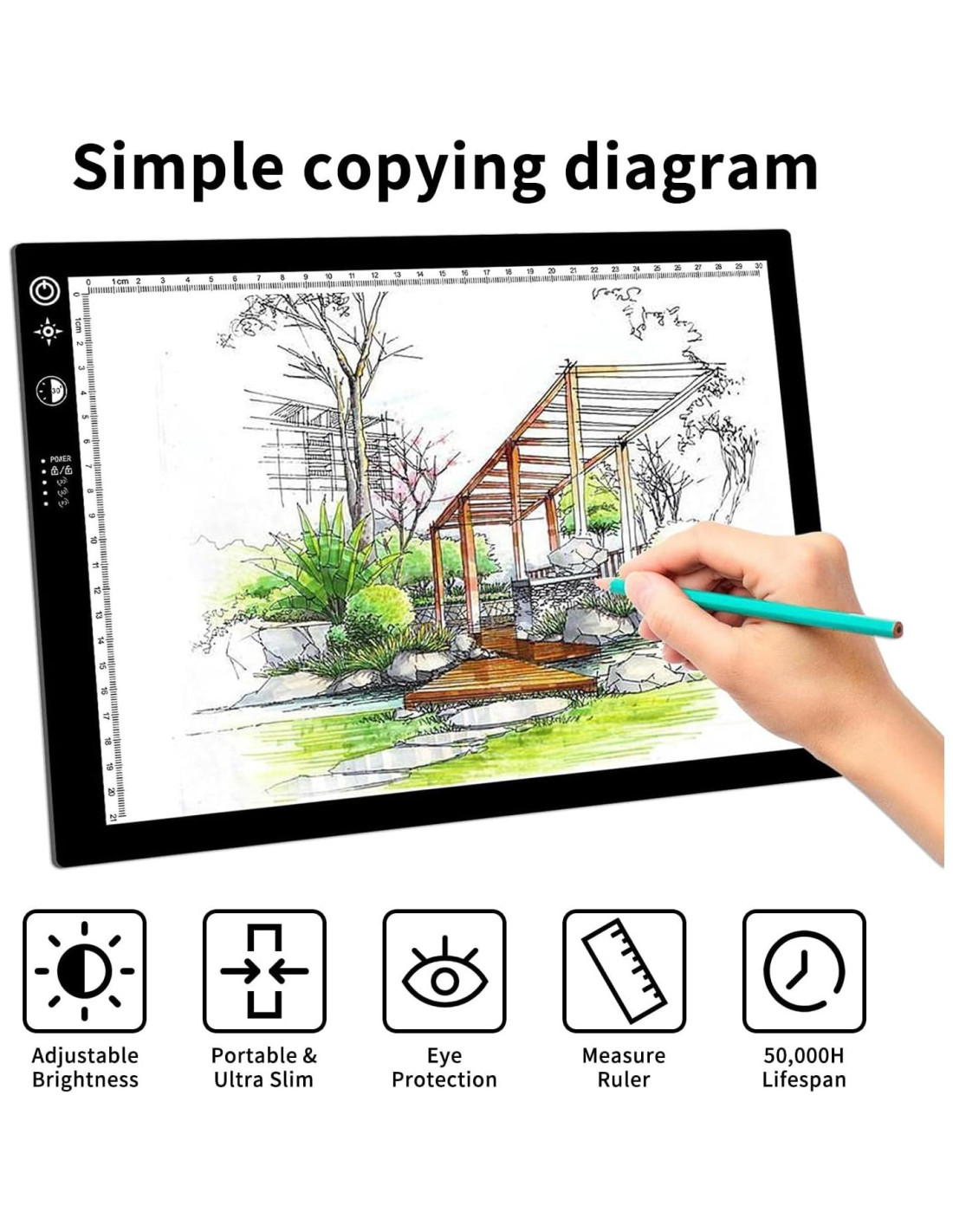 - FÁCIL TRANSPORTE: El grosor es solo 5 mm (menos de 0.3 pulgadas) lo que lo hace fácil de llevar. Dimensiones: 14.1 pulgadas (35.8 cm) x 9.4 pulgadas (23.9 cm). La iluminación es uniforme, brillante y sin parpadeos, voltaje de trabajo: DC 5V. Nota: esta caja de luz no contiene batería. Debe funcionar solo cuando está enchufada. No es recargable.