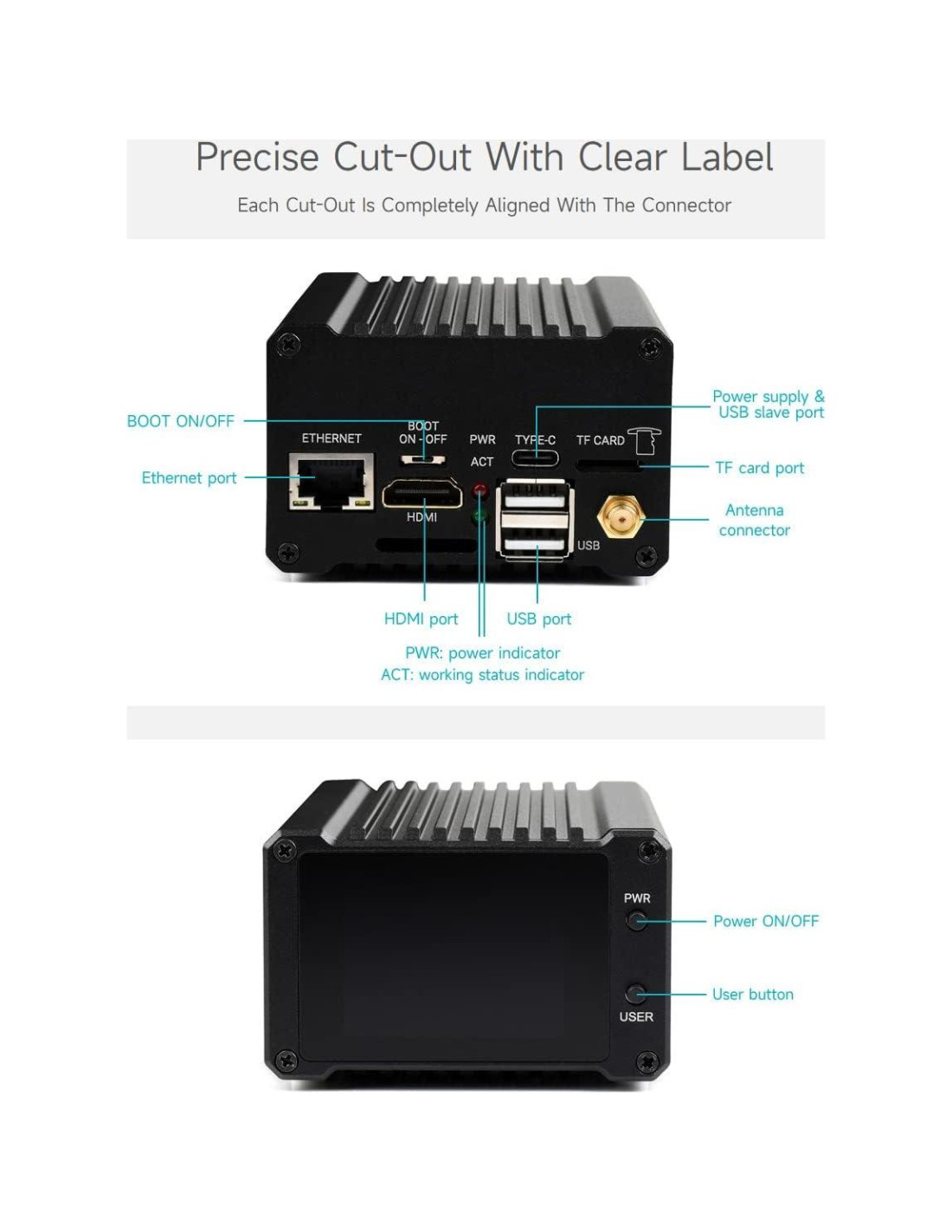 - Este kit no incluye el módulo RPi CM4. Mini-Computadora todo-en-uno, diseñada principalmente para el hogar o pequeñas oficinas en casa, pero no limitada a las aplicaciones anteriores