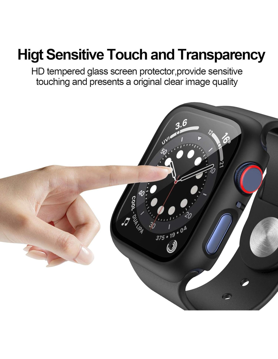- Diseño 2 en 1: Carcasa de PC duradera con protector de pantalla de vidrio templado HD delgado incorporado, protege completamente tu Apple Watch de rasguños, golpes y caídas accidentales. Súper fácil de instalar por su diseño de encaje, y carga directamente