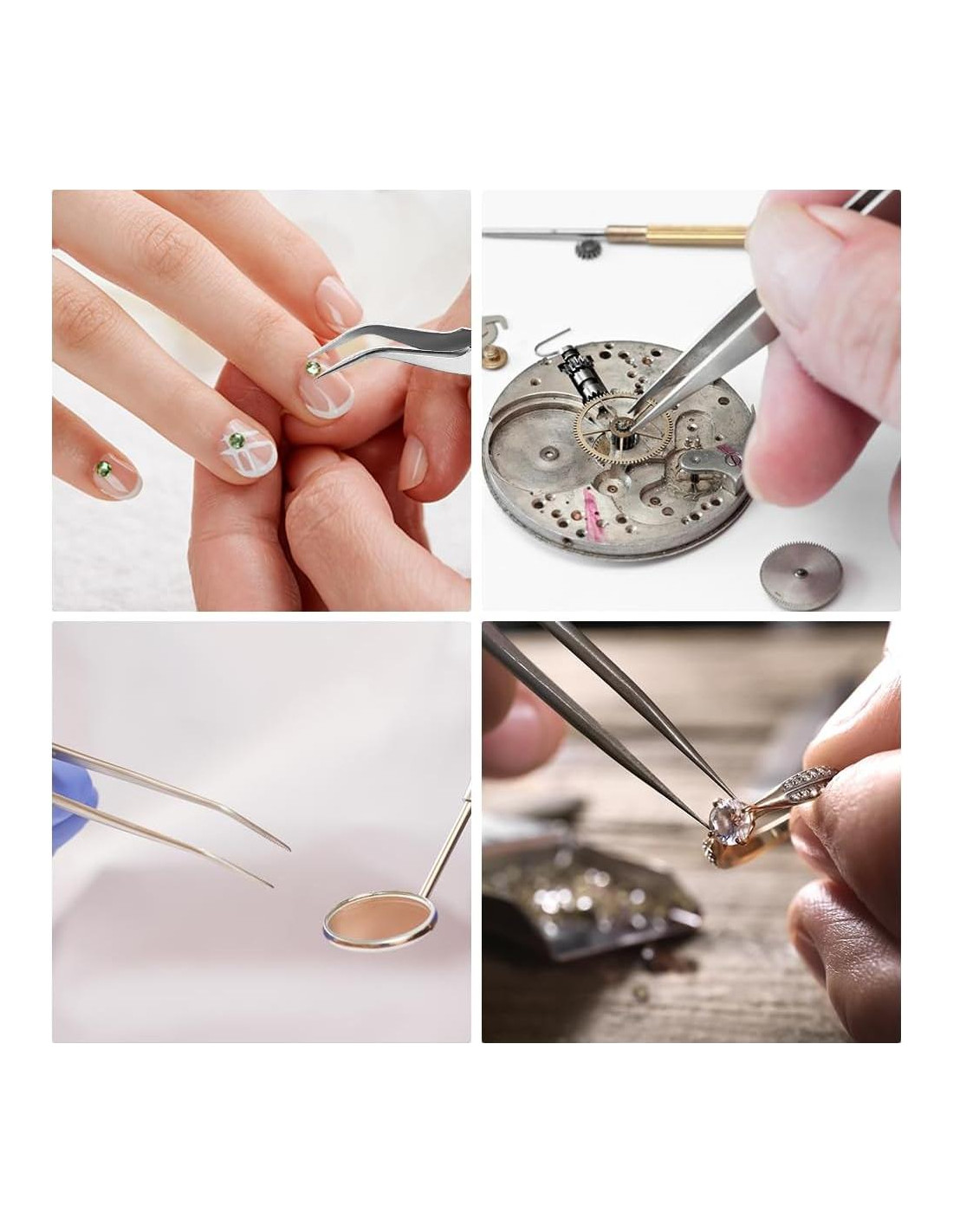 - [AMPLIA GAMA DE USOS] Nuestras pinzas tienen un diseño delgado y pueden reparar o soldar placas de circuito, placas base de computadoras, productos digitales, equipos de precisión, artesanías, joyería, talleres de belleza, así como trabajo médico y experimental.