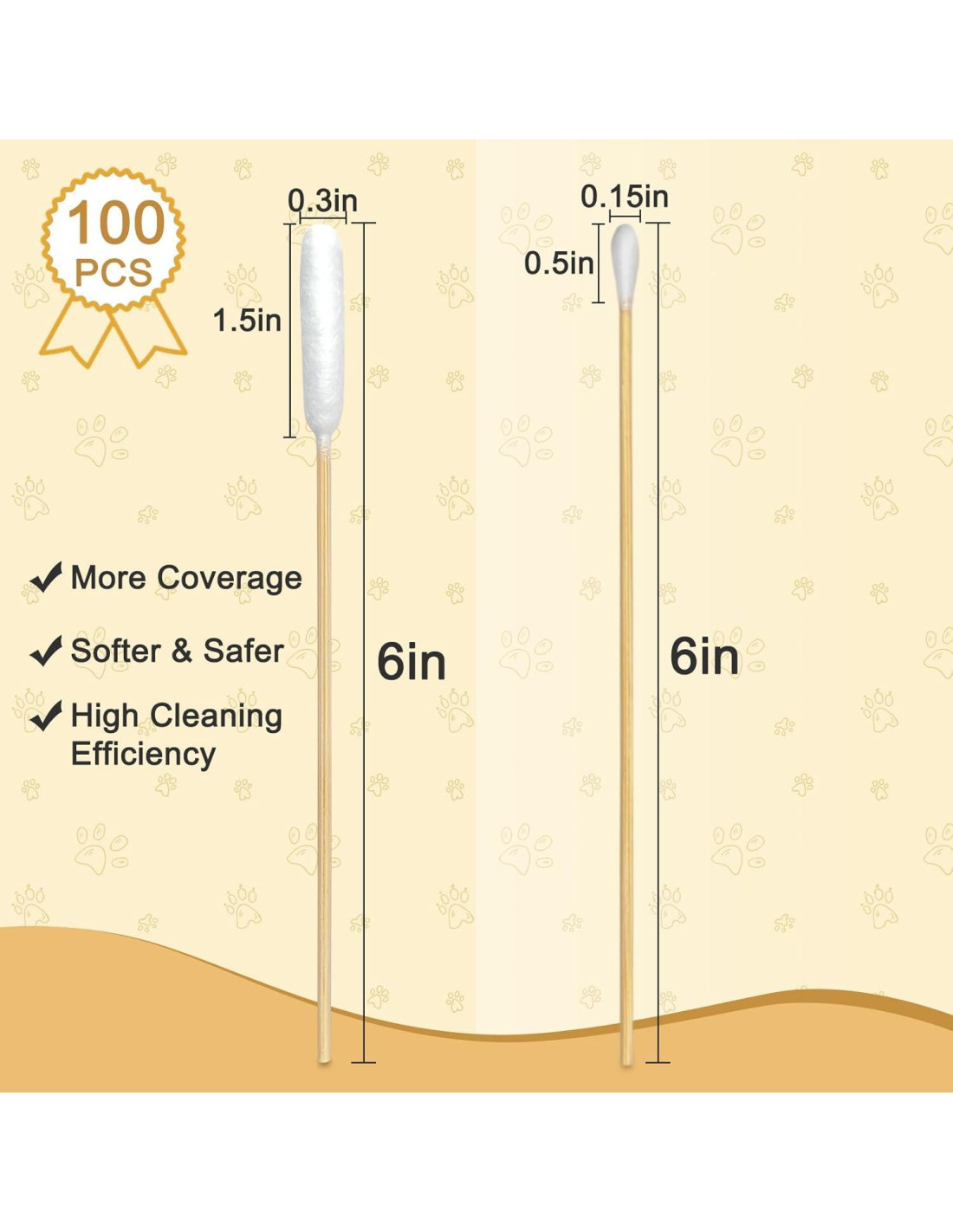 - Extra Largo para Limpieza Profunda: Estos bastones de algodón de 15.24 cm aseguran que puedas llegar profundamente a los oídos de tu mascota. El diseño largo del bastón de algodón hace que la limpieza sea más segura y efectiva
