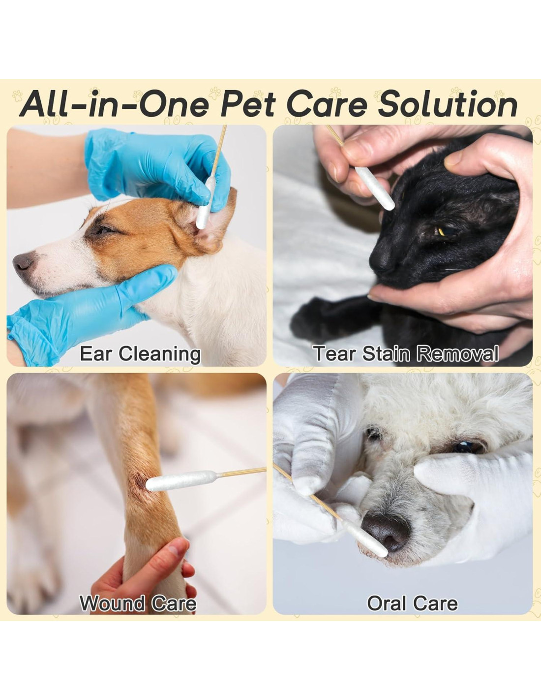 - Herramienta Versátil para el Cuidado de Mascotas: El diseño largo de estos bastones de algodón no es solo para limpiar oídos de mascotas - usa estos bastones de algodón largos para aplicar medicamentos, limpiar alrededor de los ojos, o para otras tareas delicadas de cuidado de mascotas