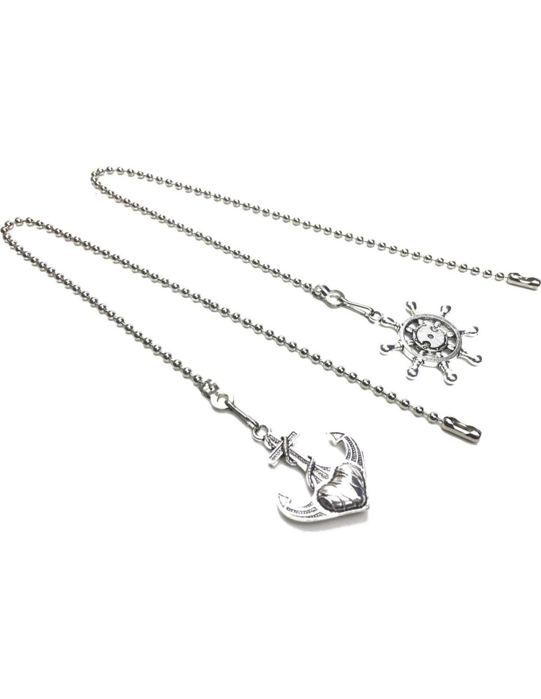 - [Empaque y Excelente Calidad] : Incluye 2 piezas de colgante de ancla y rueda para cadena de tirón de ventilador de techo; Color: Níquel; Material: metal, este extensor de cadena de tirón para ventilador es mucho más duradero y no se oxida fácilmente, lo que puede combinar diferentes posiciones, proporcionando diferentes efectos visuales para tu hogar
