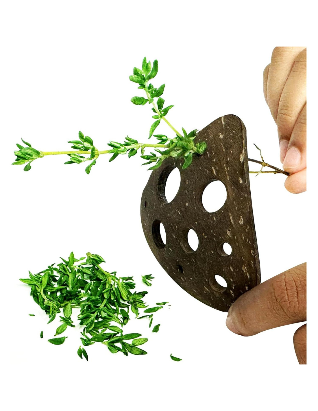 - Herramienta deshojadora de hierbas: diseño de 9 agujeros incluye agujeros de 2 mm, 3 mm, 4 mm, 5 mm, 7 mm, 10 mm, 12 mm, 13 mm y 14 mm. Este deshojador de hierbas pela eficientemente las hojas de varias hierbas y verduras incluyendo Tomillo, Romero, Salvia, Menta, Albahaca, Berza, Col Rizada y muchas más