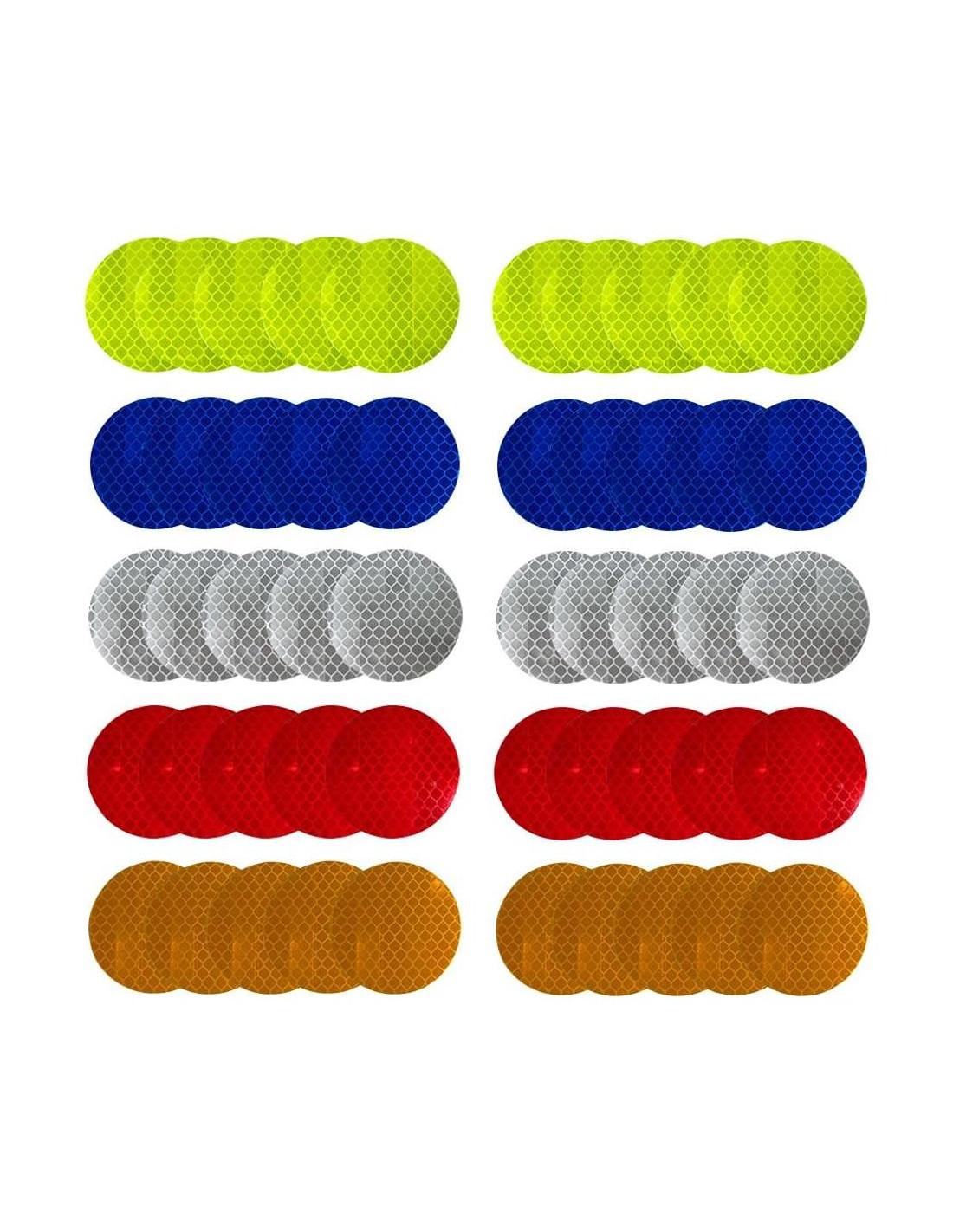 - PAQUETE INCLUIDO: Las 50pcs fuertes calcomanías de franjas reflectantes tienen 5 colores: rojo, verde, blanco, amarillo y azul, 10 pcs de cada color. 1.96 pulgadas (5 cm) * 1.96 pulgadas (5 cm).
