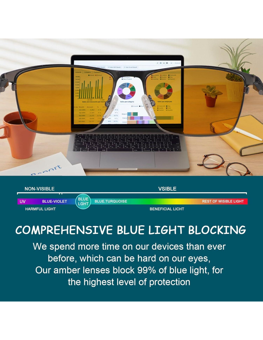 - [Filtro de Luz Azul Lentes Ámbar] Gafas con filtro de luz azul, 99% Tasa de Bloqueo Azul. Puede bloquear hasta el 99% de los rayos dañinos entre 380nm-500nm. Alivia la fatiga ocular, adecuado para usar tanto de día como de noche, ideal para usar mientras juegas videojuegos. Las gafas con filtro de luz azul están diseñadas específicamente para ayudarte a dormir al bloquear la luz azul dañina que reduce los niveles de melatonina.