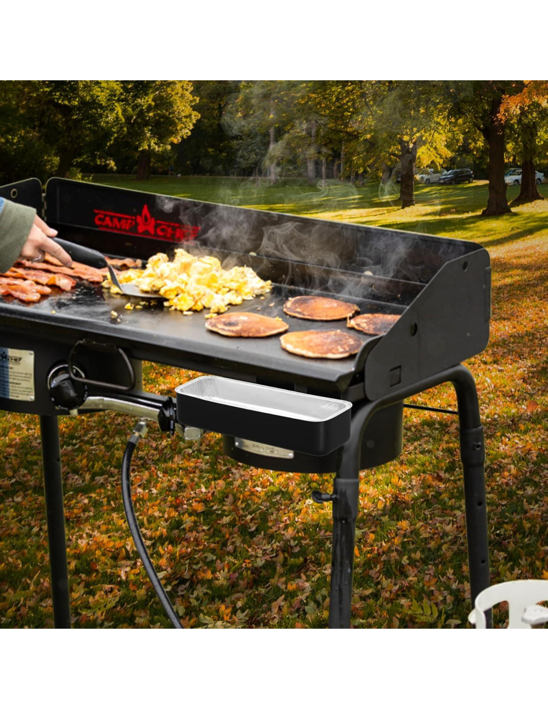 - Gran adición a tu plancha: ¡solo necesitas este kit de taza de grasa para hacer platos deliciosos en la plancha Camp Chef! Úsalo en la parrilla en lugar de reemplazar uno de los forros de bandejas de aluminio. Si tienes alguna pregunta, no dudes en contactarnos, te proporcionaremos soluciones satisfactorias.