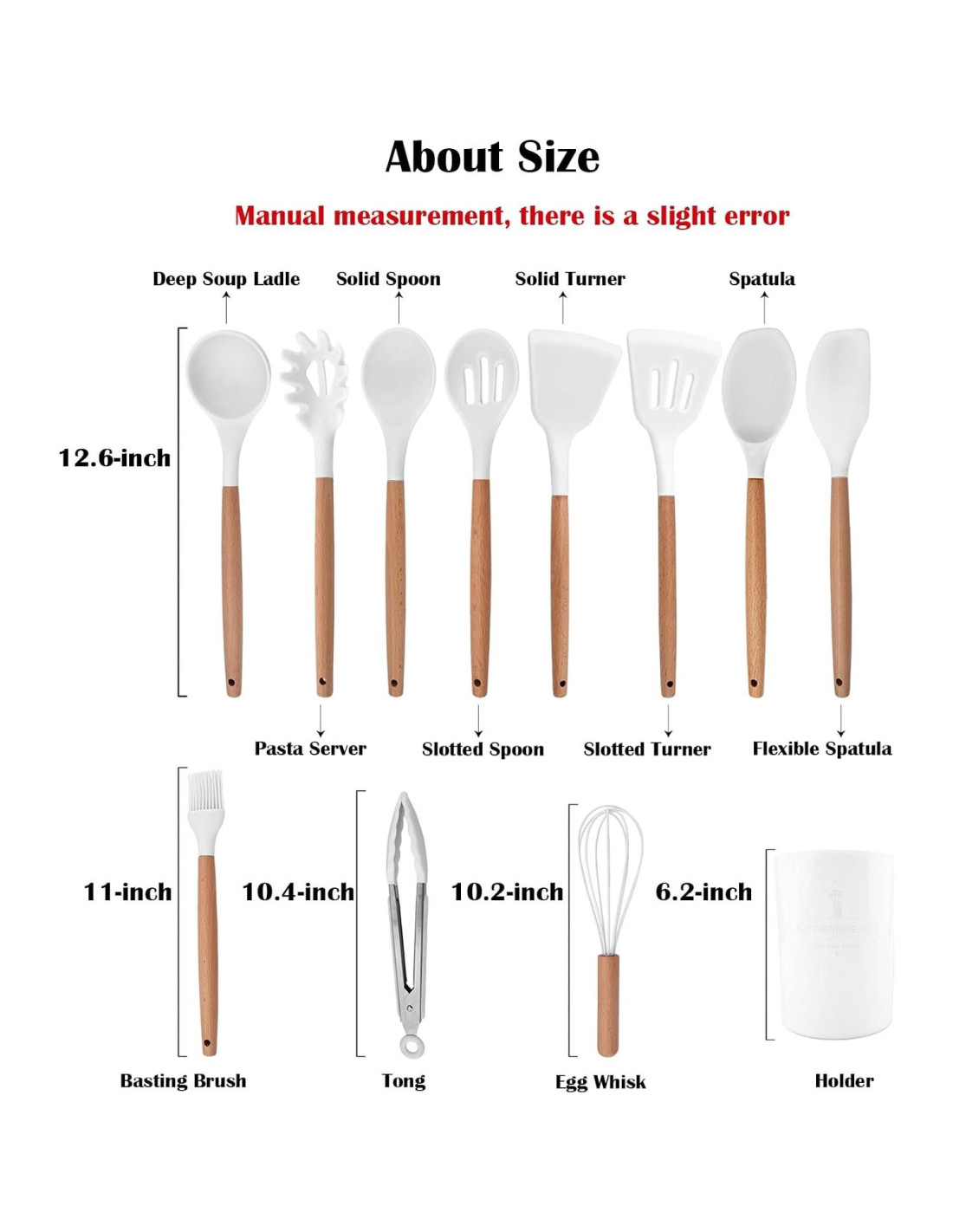 - Mango de Madera --- Este set de utensilios de cocina con mango de madera duradero es importante para la cocina. Fácil de agarrar y con peso equilibrado, hacer de cocinar un placer.