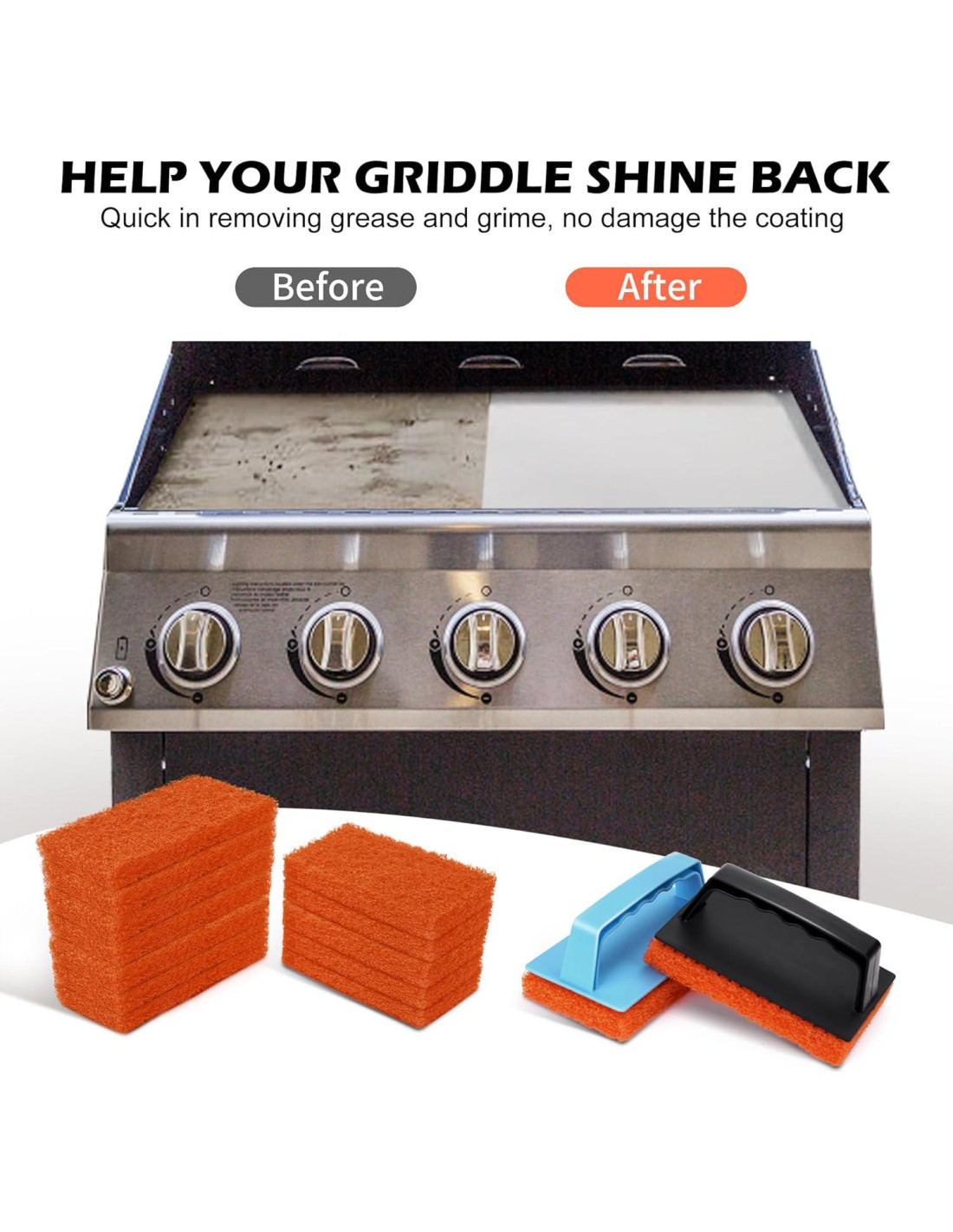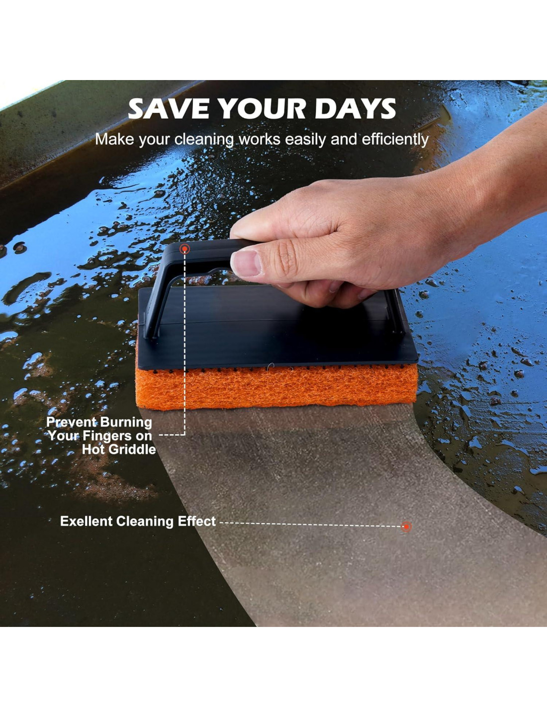 - REGALO PARA FIESTA DE BBQ - Mantén tu plancha o parrilla en condiciones prístinas para tu próxima parrillada, protegiendo a tus invitados de grasa y restos de comida no deseados para saborear las comidas más sabrosas. Utiliza estas almohadillas de fregado para un proceso de limpieza eficiente, y te sorprenderán los resultados. Viene con 14 almohadillas reemplazables y 2 mangos en caja de regalo.