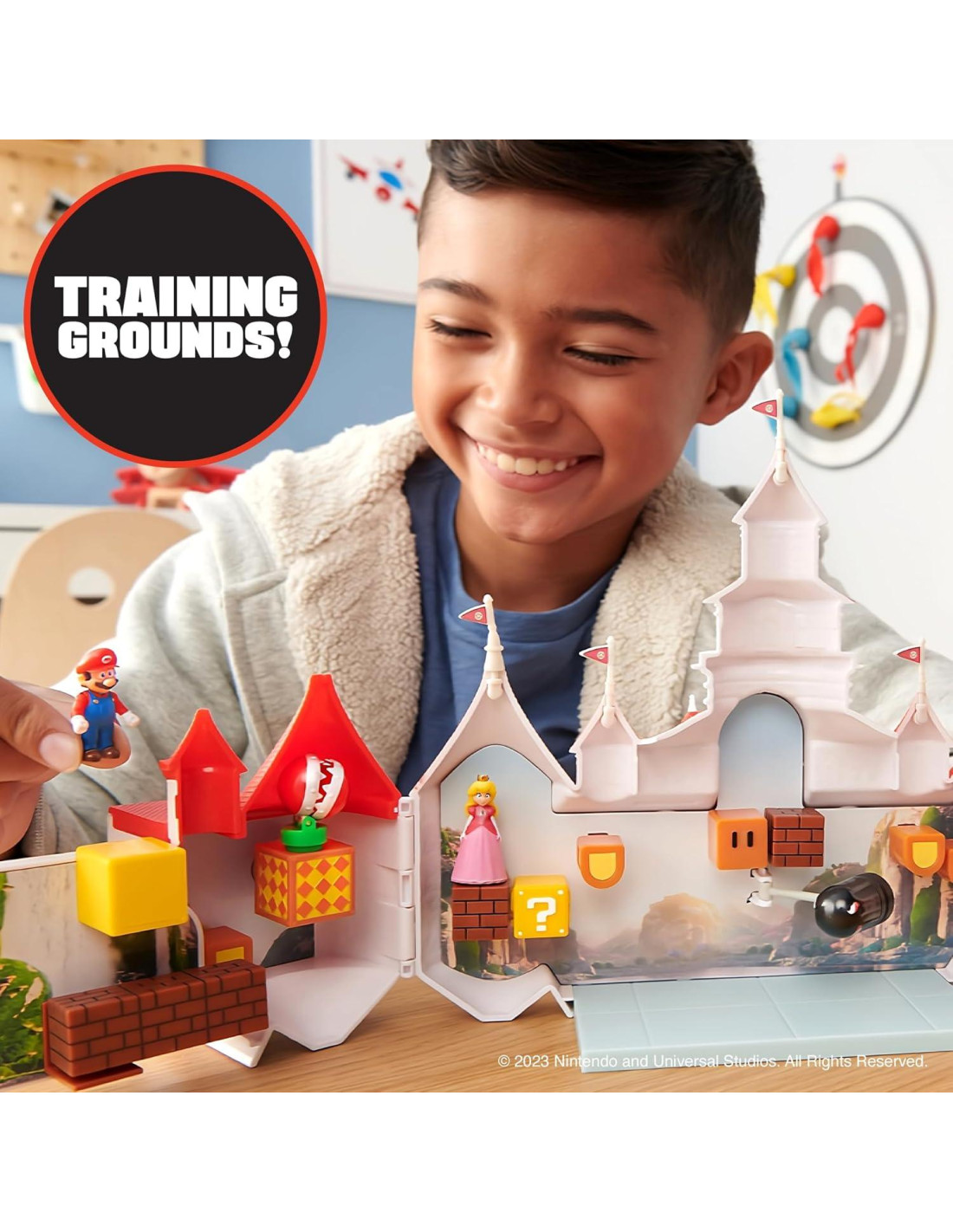 De Nintendo e Illumination llega una nueva película animada basada en el mundo de Super Mario Bros. Los Hermanos Mario se encuentran transportados a una tierra misteriosa llamada el Reino Champiñón. Únete a Mario en su misión de salvar a Luigi-y al mundo-de las garras del malvado Bowser y su ejército. El Castillo del Reino Champiñón está completamente cerrado, se abre a casi 22 pulgadas (55,88 cm) de ancho y viene con mini figuras de Mario y Peach de 1.25 pulgadas (3,18 cm). Abre la parte trasera del juego para revelar los terrenos de entrenamiento como se ve en la película. Con múltiples momentos interactivos, los fanáticos pueden recrear la diversión de saltar sobre plantas piraña recreadas, saltar sobre un Bullet Bill y evadir un palo de fuego oscilante. - Castillo del Reino Champiñón de la Princesa Peach de la película - El interior del castillo se abre a casi 22 pulgadas (55,88 cm) de ancho y recrea el momento del terreno de entrenamiento de la película, incluyendo bloques, planta piraña, Bullet Bill, palo de fuego y más! - Incluye figuras de Mario y Peach a escala mini de 1.25 pulgadas (3,18 cm) - Edades 3+