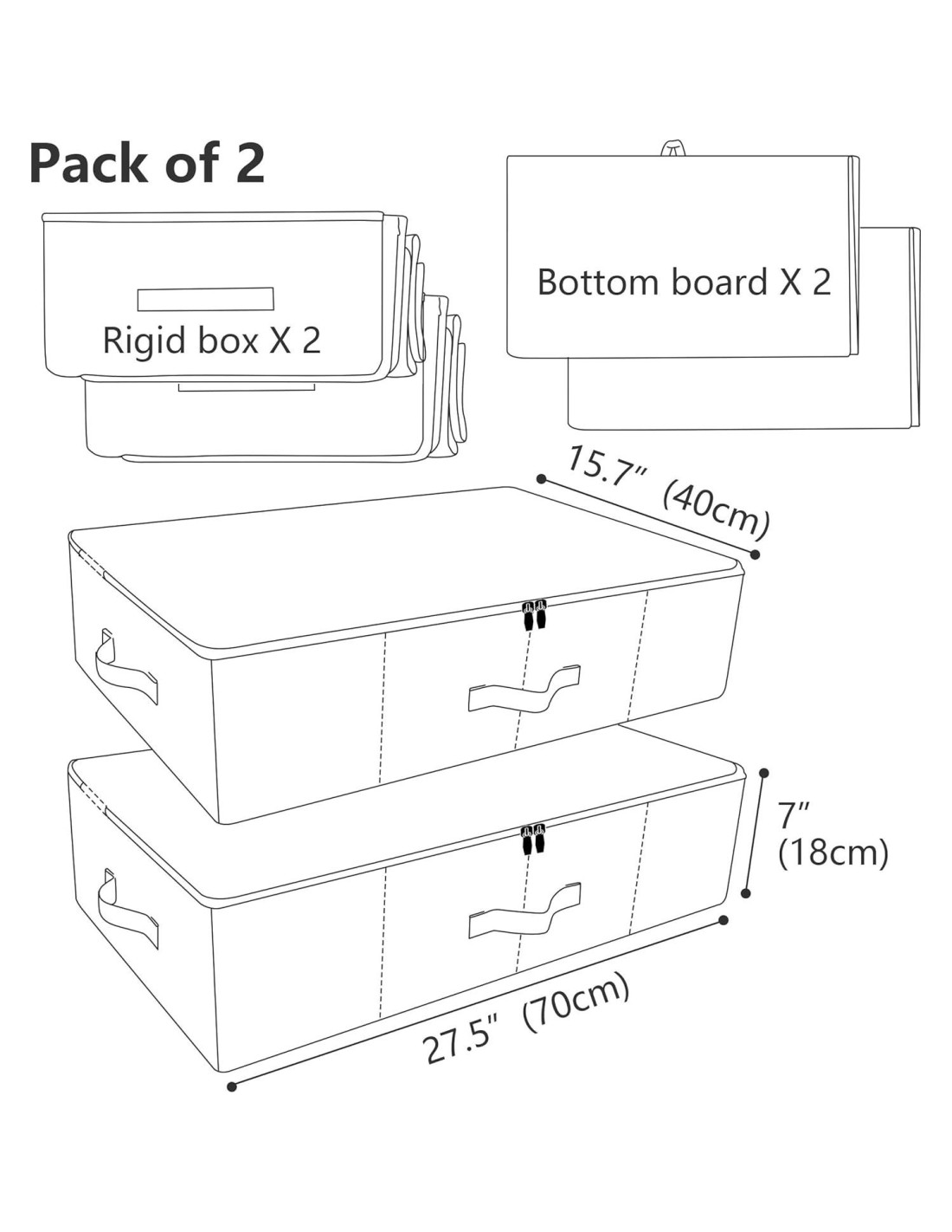 - Esta caja de almacenamiento debajo de la cama está hecha de una mezcla de poliéster por fuera, una tabla de plástico PP gruesa por dentro y una tela de nylon suave por dentro. Tiene apertura de 3 lados con 2 cierres de cremallera y 3 asas en los lados, lo que facilita sacar y meter artículos desde cualquier dirección.