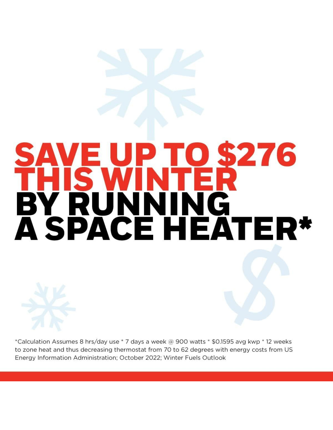 - AHORROS INTELIGENTES - ¿Preocupado por los costos de calefacción? Un calentador eléctrico puede ayudarte a ahorrar hasta $276* en costos de calefacción este año. Un calentador de espacio para uso en interiores puede ayudarte a ahorrar dinero mientras proporciona un calor reconfortante.