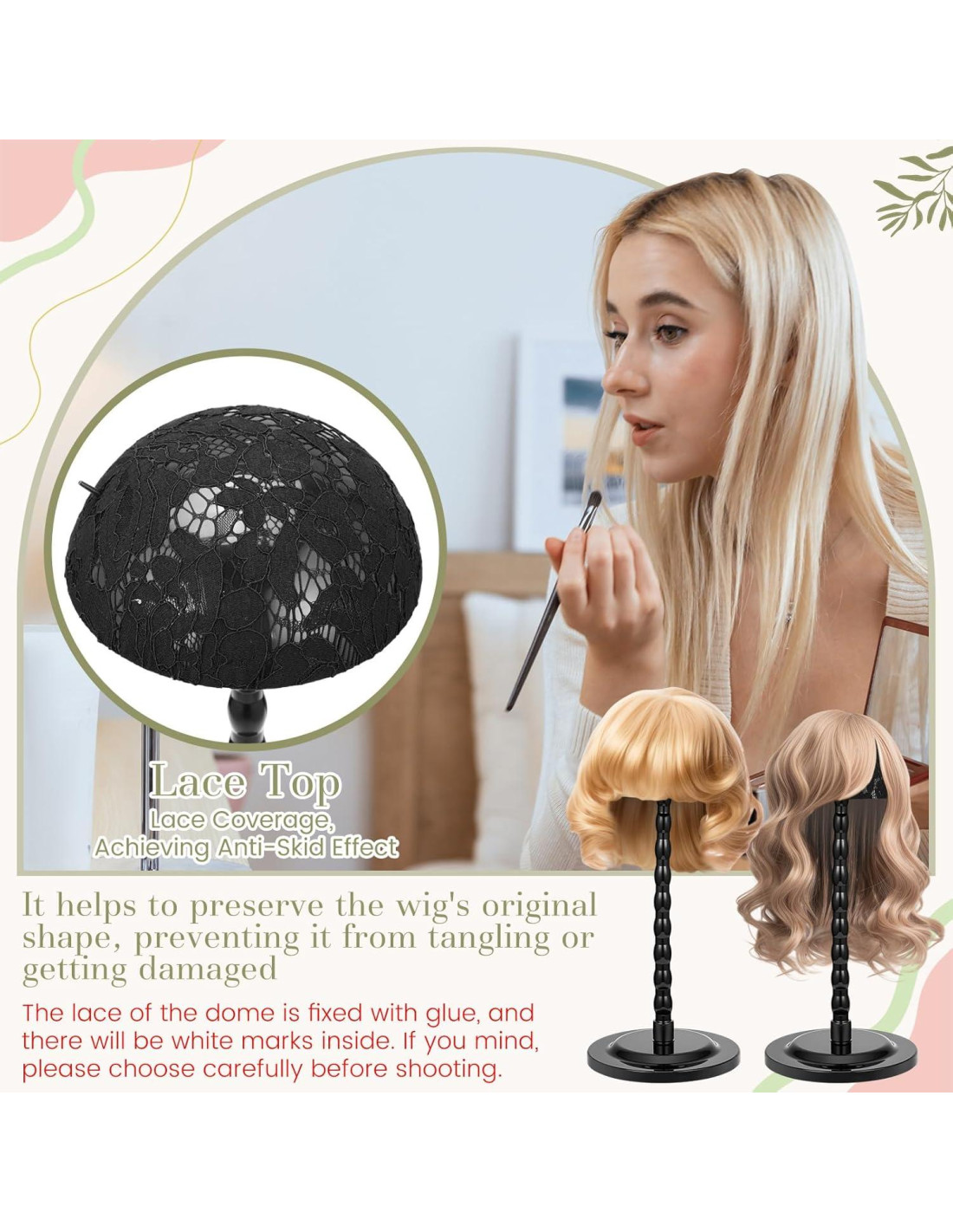 - Diseño antideslizante para estabilidad: equipado con una pequeña espiga y encaje, el soporte de maniquí asegura que tus pelucas permanezcan en su lugar; Esta característica previene deslizamientos y mantiene la forma de la peluca, ofreciendo una solución de exhibición estable y confiable