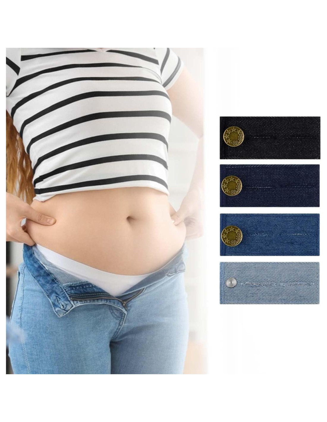 4PCS 4 Colores Extensores de Cintura de Mezclilla con Botones Metálicos para Pantalones de Embarazo, Expansores de Cintura Ajustables, Extensor de Botón para Pantalones, Jeans, Pantalones y Falda, para Hombres y Mujeres