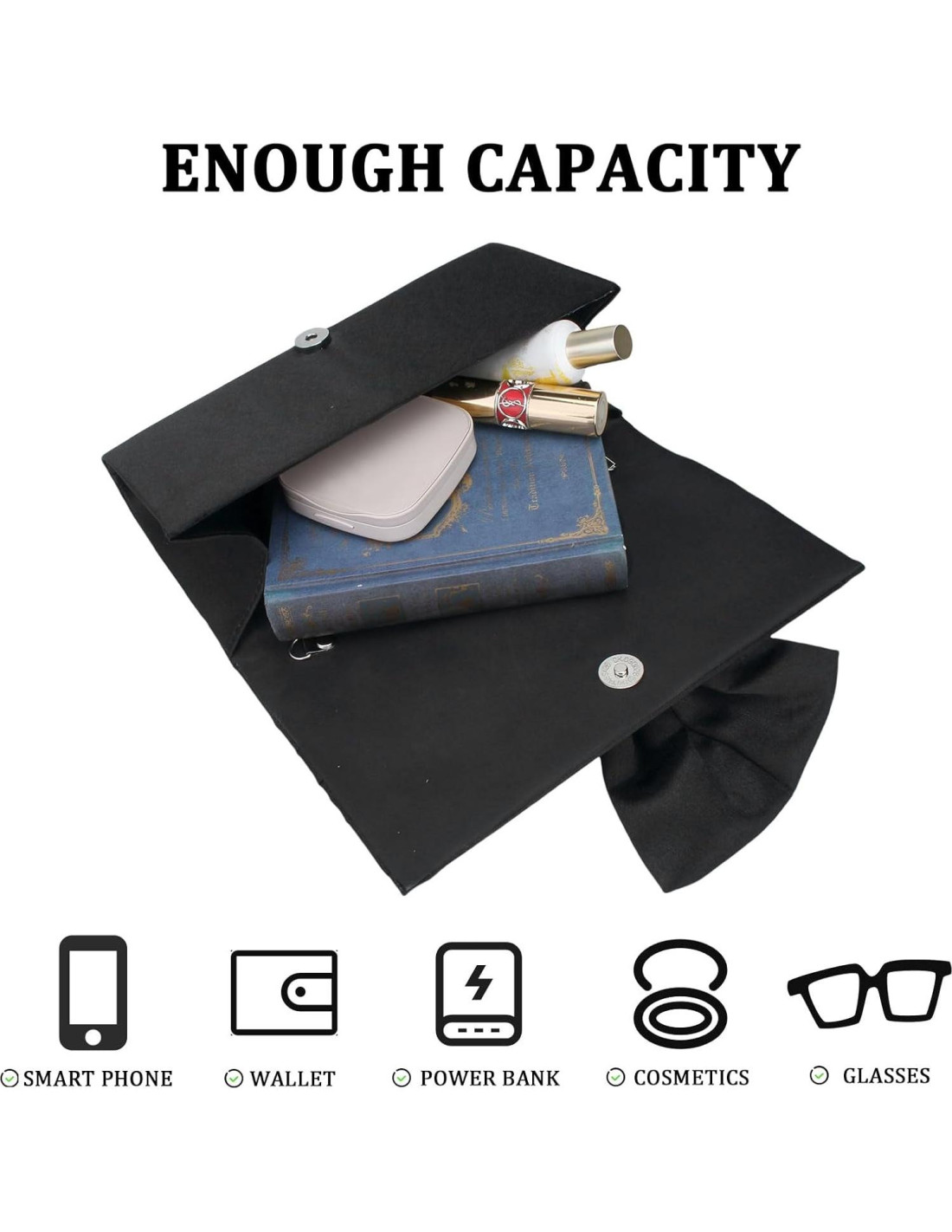 - Bolso de Banquete con Lazo: Este bolso de mano negro con apariencia en forma de lazo es exquisito y elegante. El nuevo estilo de bolso de noche con lazo es más deslumbrante, llamativo, simple y versátil.