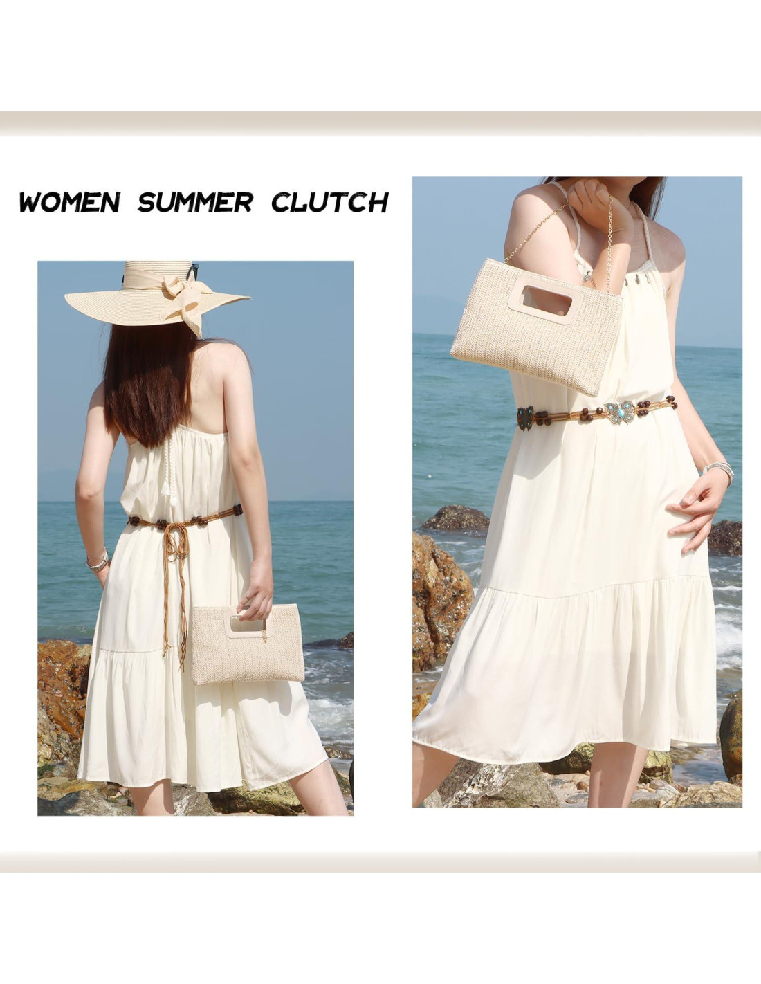 - Diseño: el bolso de mano de paja tejido viene con una cadena larga desmontable, proporcionando versatilidad para usarse como bolso de mano, tote, bolso cruzado o bolso de hombro. Ideal para la playa de verano, resorts, viajes, fiestas, vacaciones, trabajo, bodas, eventos formales o cualquier ocasión.