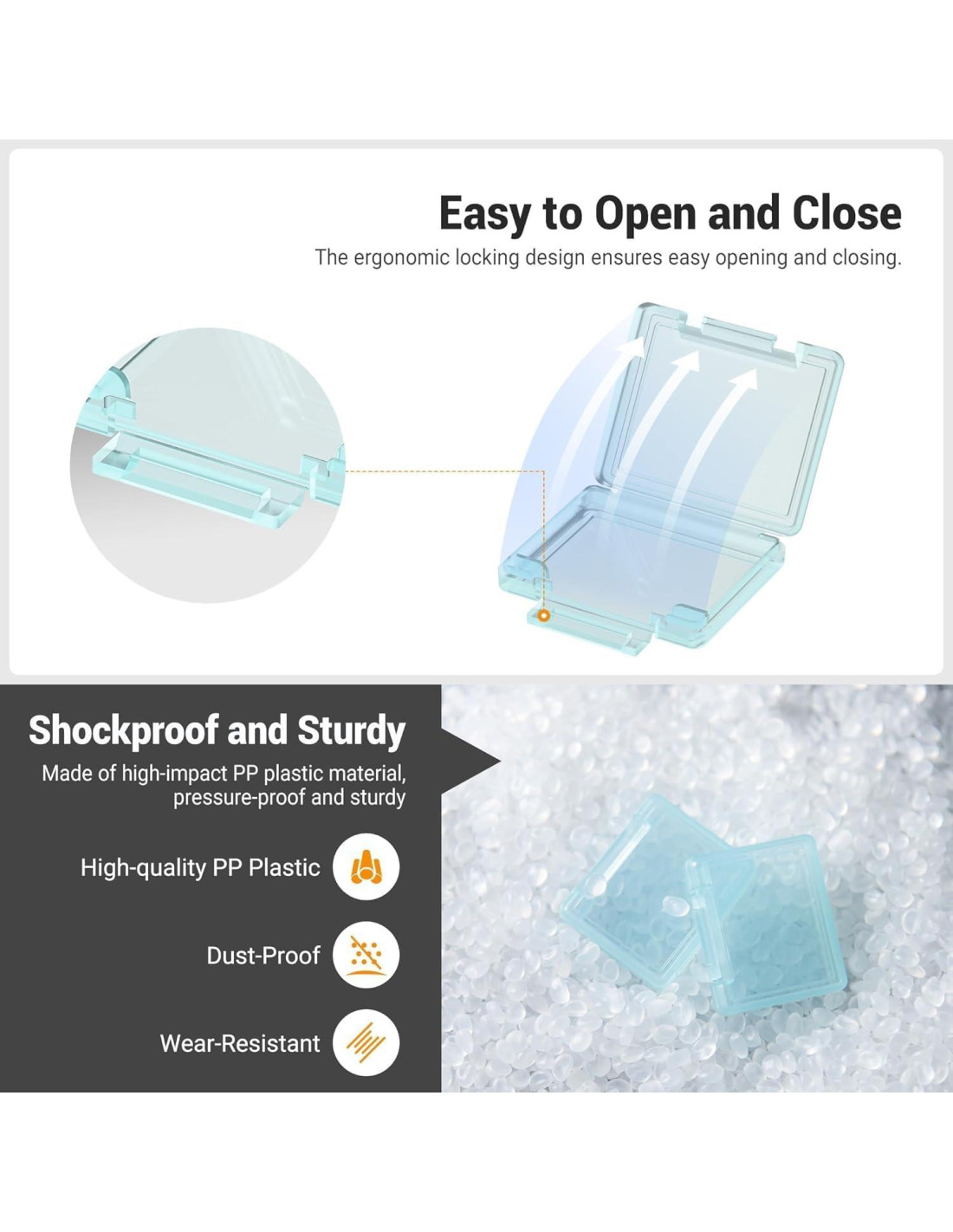 - Hecho de plástico PP de alta calidad, es resistente, duradero y resistente a la deformación, proporcionando una efectiva protección a prueba de polvo y salpicaduras para tus tarjetas de memoria.