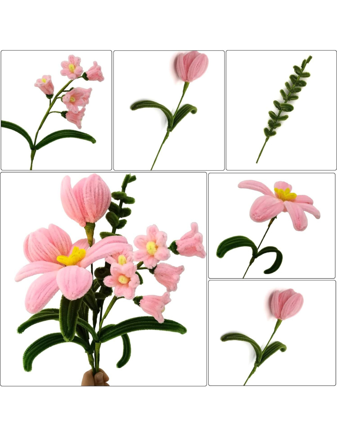 - Conjunto de flores de limpiapipas de valor: 100 limpiapipas rosa claro, 100 limpiapipas verde musgo, 10 limpiapipas amarillos, 20 alambres florales de 30 cm, 1 cinta de jardinería verde claro, 1 instrucción.