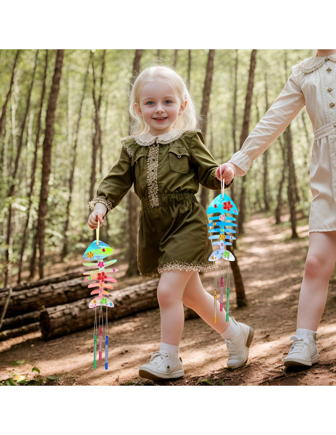 - [Lo que recibirás] Nuestros kits de manualidades para niños vienen con 12 x huesos de pescado de madera (4 diseños, 3 de cada uno), 36x tubos de sinos de viento (4 colores, 9 de cada color), 2x pinceles de pintura (no se incluye pintura), 1x alambre plateado de 5M, 12 x cuerdas de color, 1x pegatinas de rhinestone.