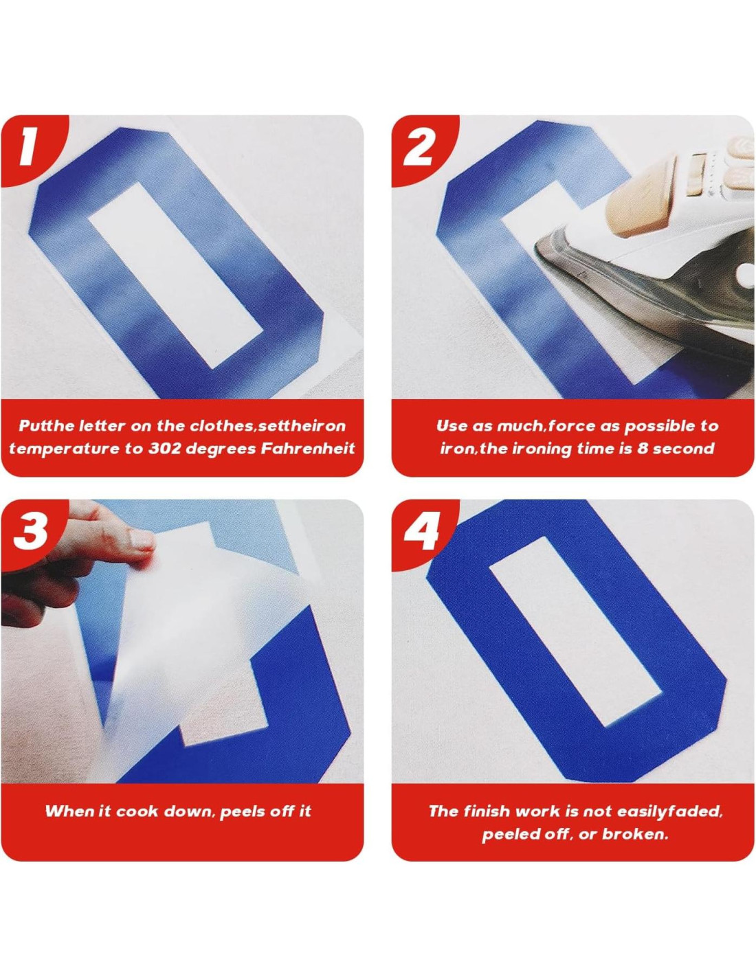 - Alta Calidad: Nuestras letras de transferencia de hierro están hechas con materiales de vinilo duraderos que pueden resistir múltiples lavados y desgaste.