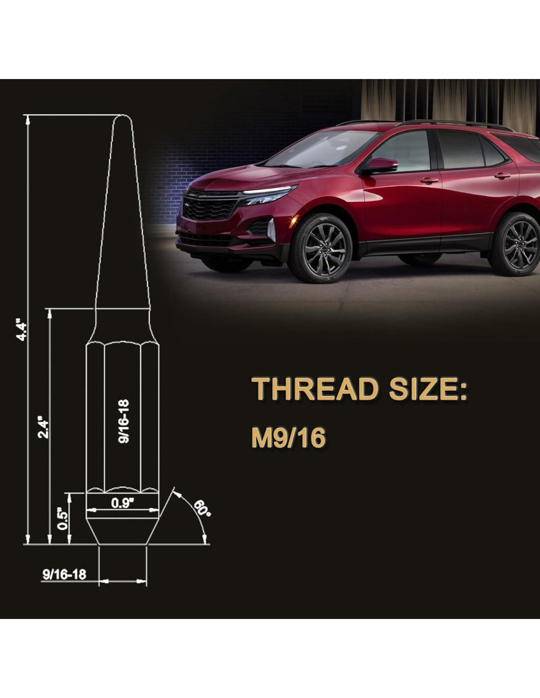 - Especificaciones de Tamaño: El tamaño de rosca de 9/16 pulgadas (1.43 cm) asegura un ajuste adecuado para vehículos compatibles, con acabado en cromo para durabilidad y estilo