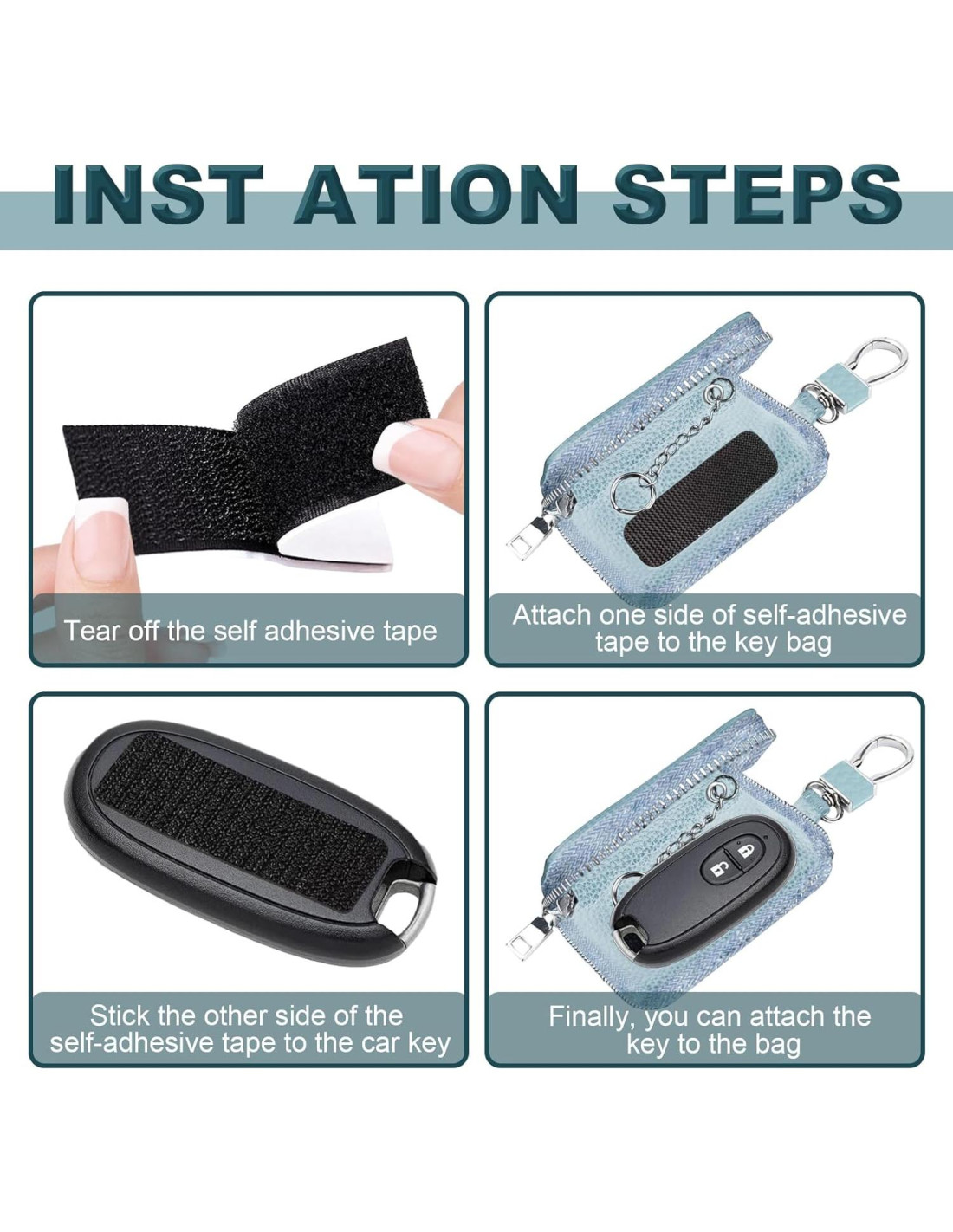 Consejos de instalación: Si la funda remota del coche es más grande que las llaves del coche, puedes usar nuestra cinta de gancho y bucle complementaria para resolver el problema.