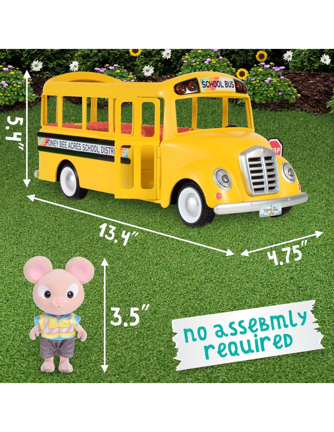 ¡Bienvenido a las casas de muñecas, conjuntos de juego y figuras de Honey Bee Acres donde el juego de simulación es dulce y el detalle del producto es fresco y colorido! ¿Qué mejor manera de ir a la escuela que en el Autobús Escolar Sunshine! ¡El autobús tiene luces y sonidos reales y tiene capacidad para 8 figuras de niños con un asiento para el conductor! El Sr. Squeak es una figura de peluche posable y es el conductor del autobús de Honey Bee Acres. Su trabajo es llevar a los niños de manera segura hacia y desde la escuela. El Sr. Squeak está concentrado en la carretera cuando todos están en su autobús, pero siempre sonríe cuando los niños se ríen en sus asientos detrás de él. ¡Diviértete en los días escolares en Honey Bee Acres y haz que cada día sea un día especial!