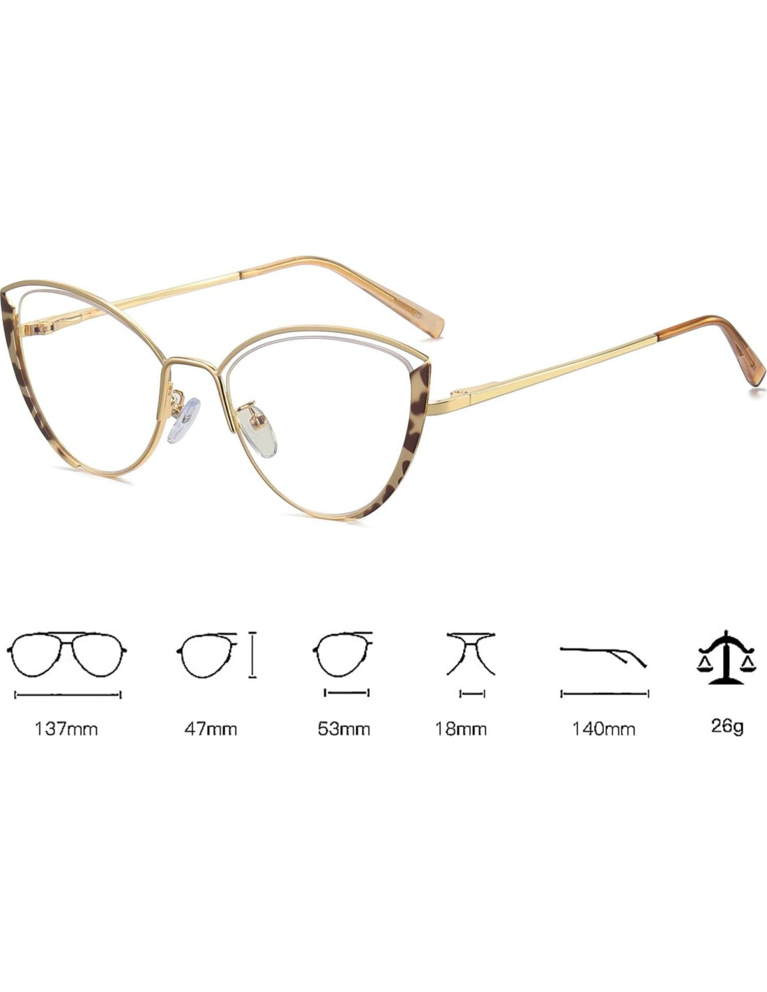 - ESTILO ÚNICO-Gafas de moda para jóvenes deben ser como color dorado que combina con un marco de metal delgado. No lentes de forma ordinaria sino lentes claros estilo ojo de gato con lados en negro, rosa, blanco, púrpura, leopardo y rojo castaño. Difícil de dejar pasar.
