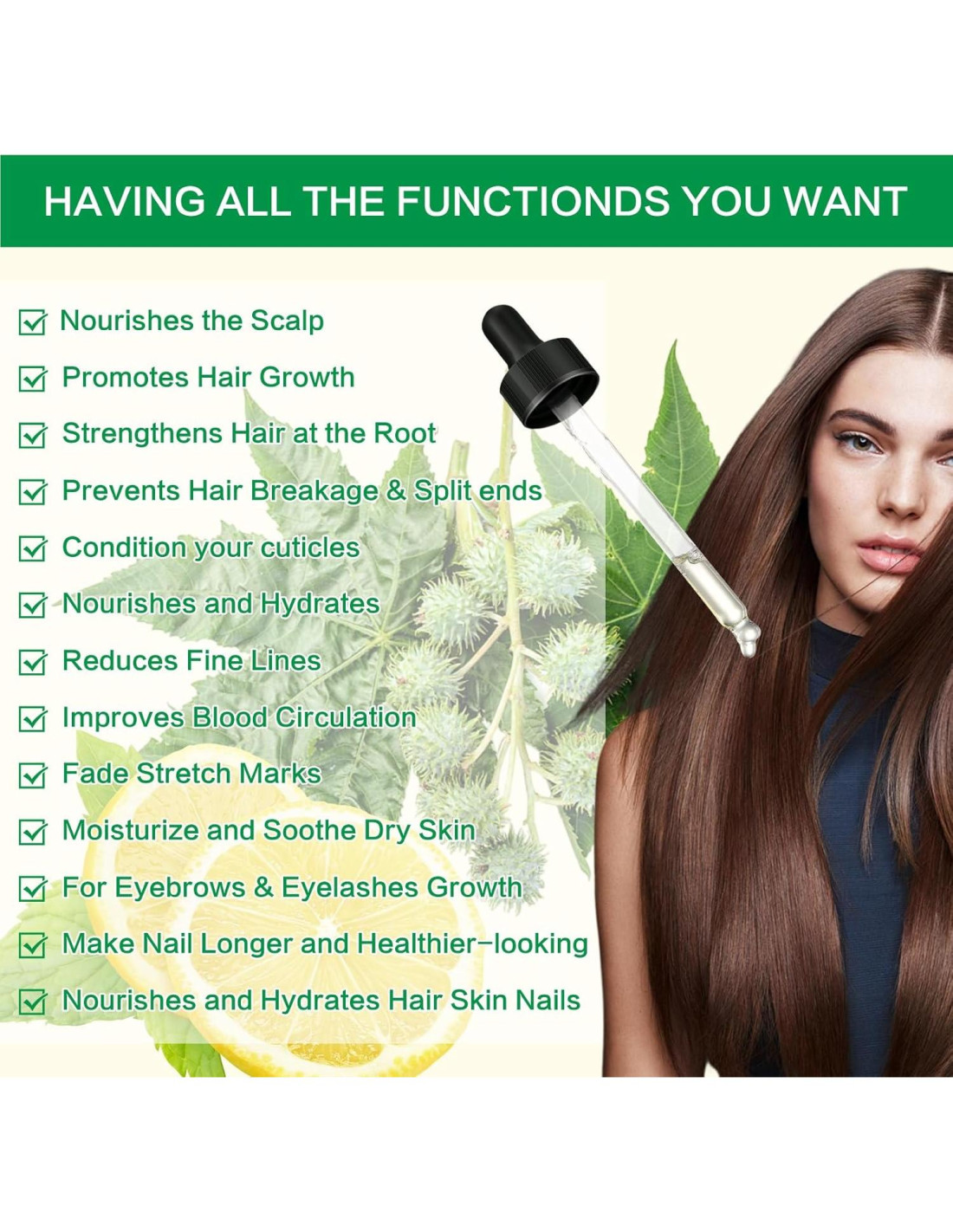 - Ayuda al Cabello con Aceite de Ricino Prensado en Frío: Di hola a un cabello más grueso, pestañas más llenas y cejas con aceite de ricino que estimula el crecimiento del cabello y mejora la hidratación de la piel.