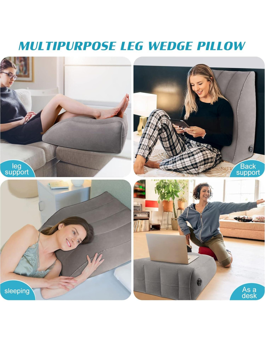- Cojines en cuña multipropósito para elevación. Los cojines para las piernas se pueden usar como cojines para la cadera, un cojín en cuña para dormir, un cojín para la espalda al dormir, un reposapiés elevado, un cojín para la circulación de las piernas, un cojín para acostarse o un cojín en cuña después de la cirugía. Este cojín en cuña para la cama puede usarse también en su sofá, asiento de automóvil y otros lugares para apoyar sus piernas o espalda.