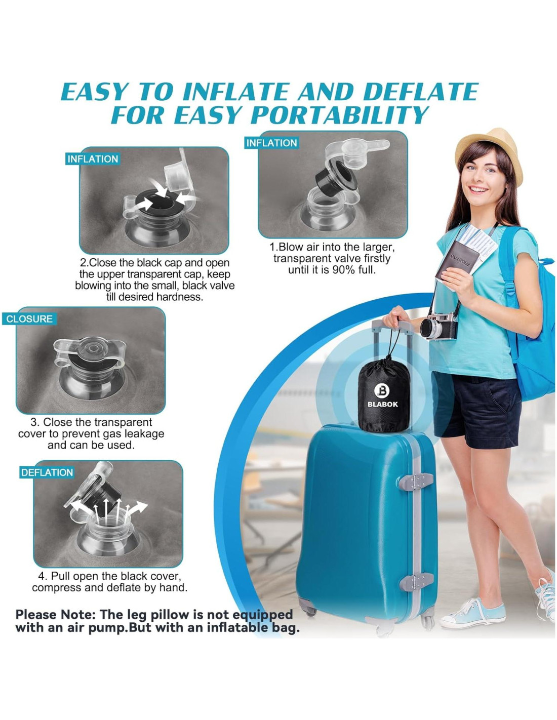 - Fácil de almacenar y transportar. El cojín inflable para las piernas tiene un puerto de inflado, que es fácil de inflar y desinflar. El cojín en cuña mide 24.8 pulgadas (63,0 cm) x 19.7 pulgadas (50,0 cm) x 9.4 pulgadas (23,9 cm), puede soportar cómodamente sus piernas y evitar que se deslicen al dormir. El tamaño después de desinflar es de 6.6 pulgadas (16,8 cm) x 4.7 pulgadas (11,9 cm) x 3.1 pulgadas (7,9 cm), lo que es fácil de llevar. Es la mejor opción para viajar o regalar a familiares y amigos.